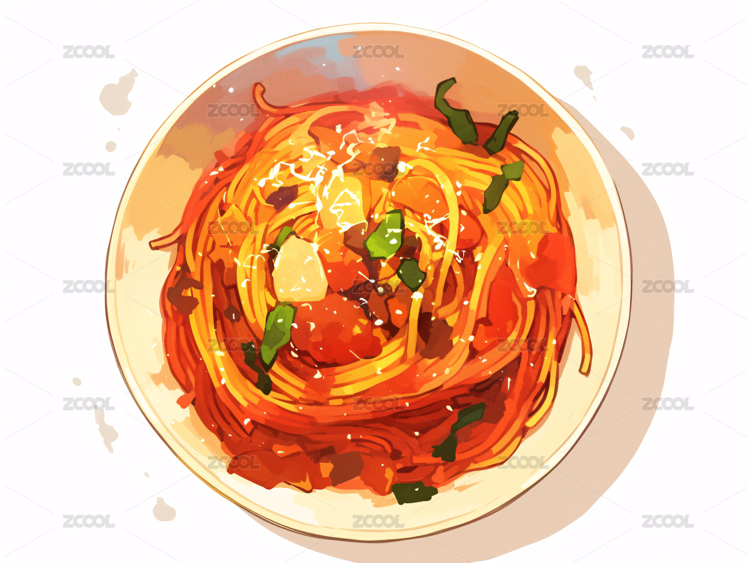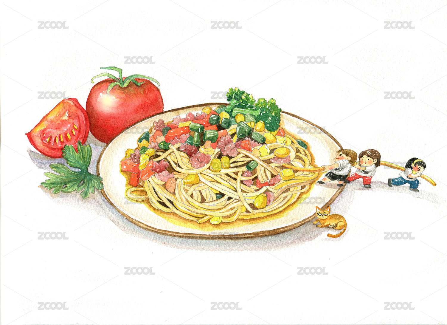 水彩食物之番茄肉酱意粉