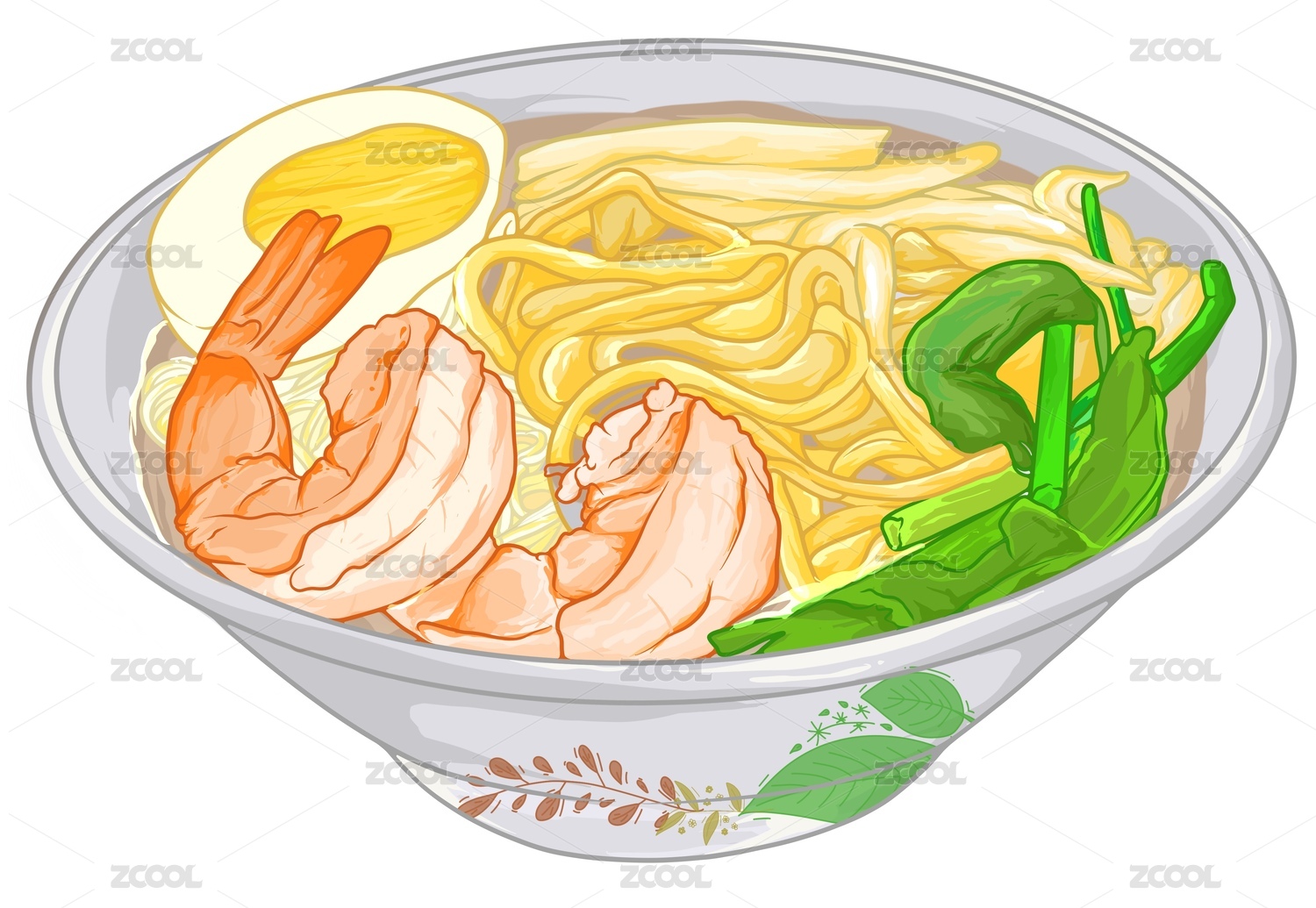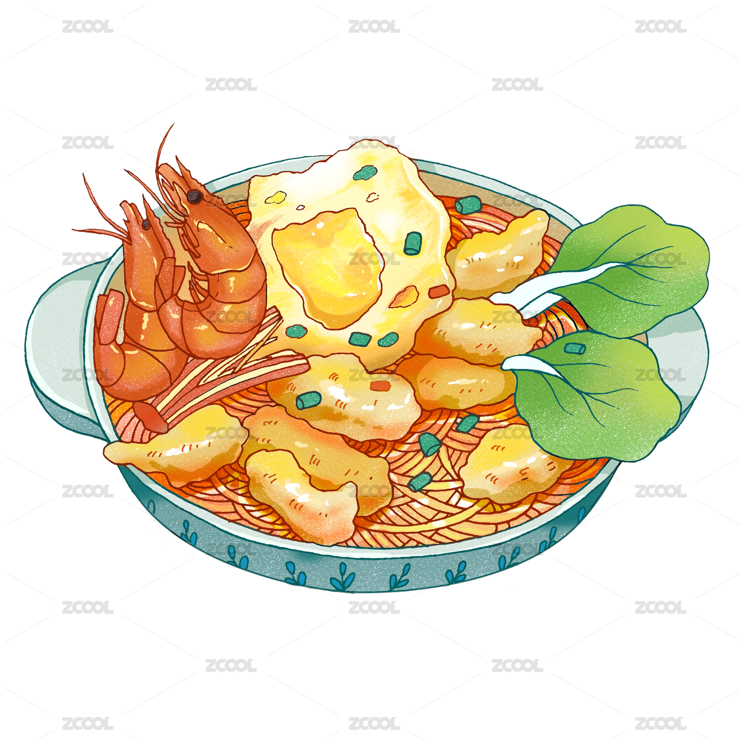 水彩美食系列之鲜虾云吞面