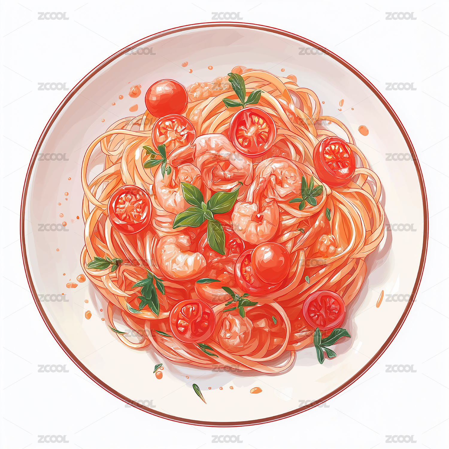 写实鲜虾意面美食插画餐饮设计素材