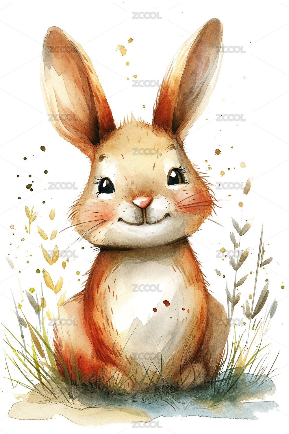 卡通水彩小兔子
