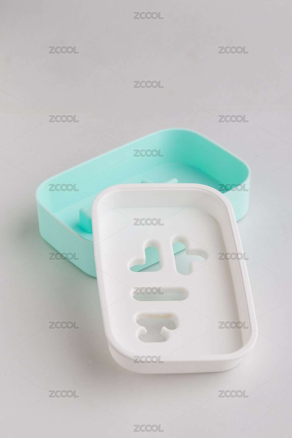 陶瓷洗脸盆上的香皂盒和白色香皂