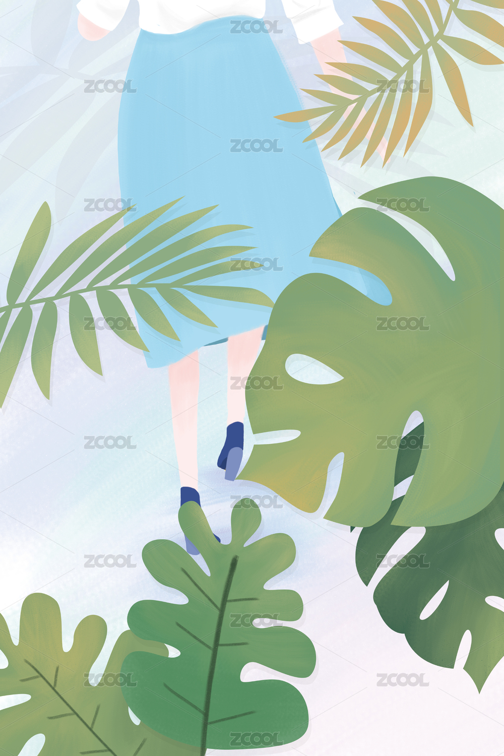小清新风格,商场,街道,插画,背景,商店,玻璃展柜,树,叶,卖场