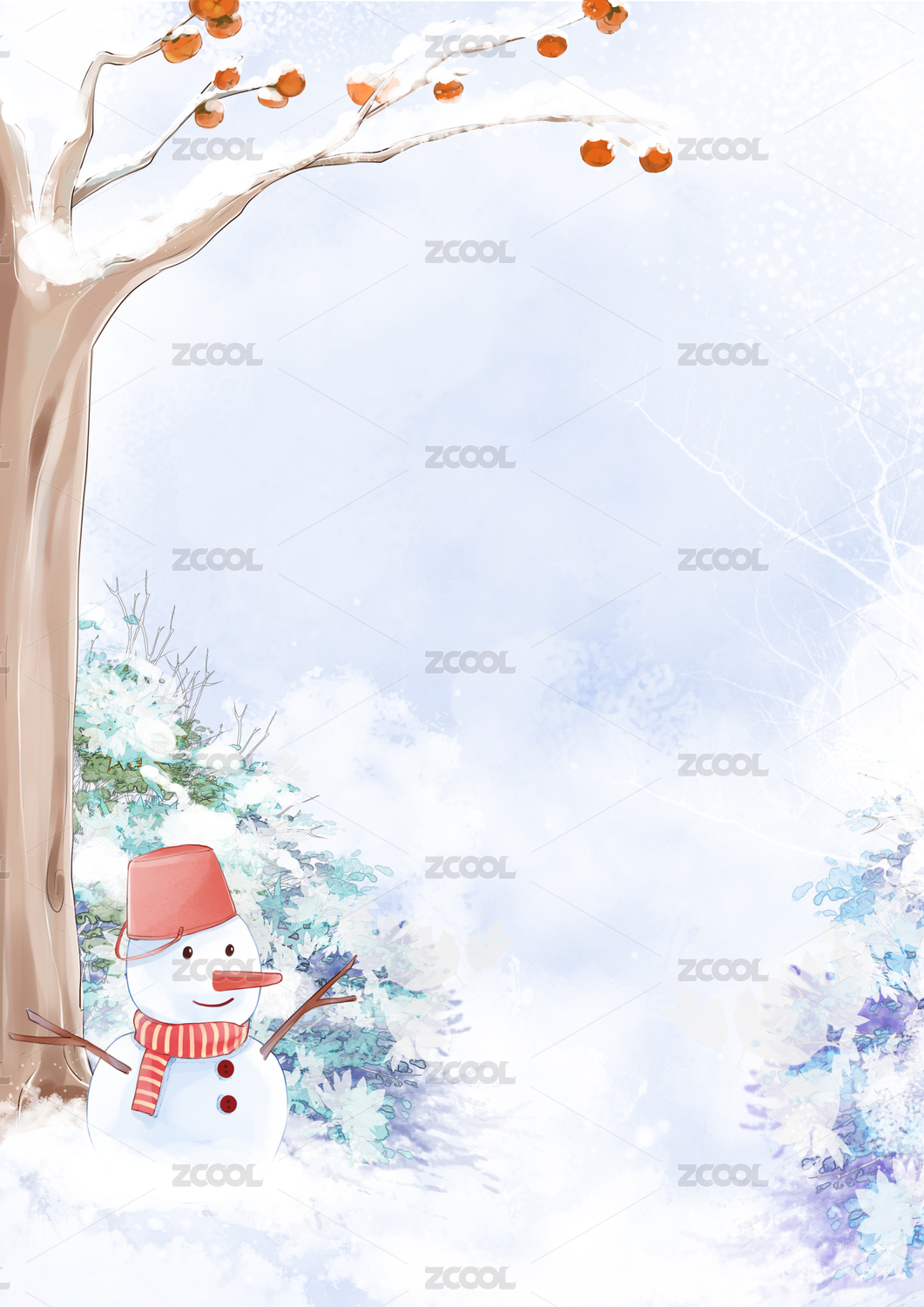 冬天的柿子树和雪人