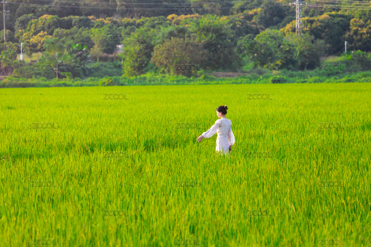 女性在稻田里行走