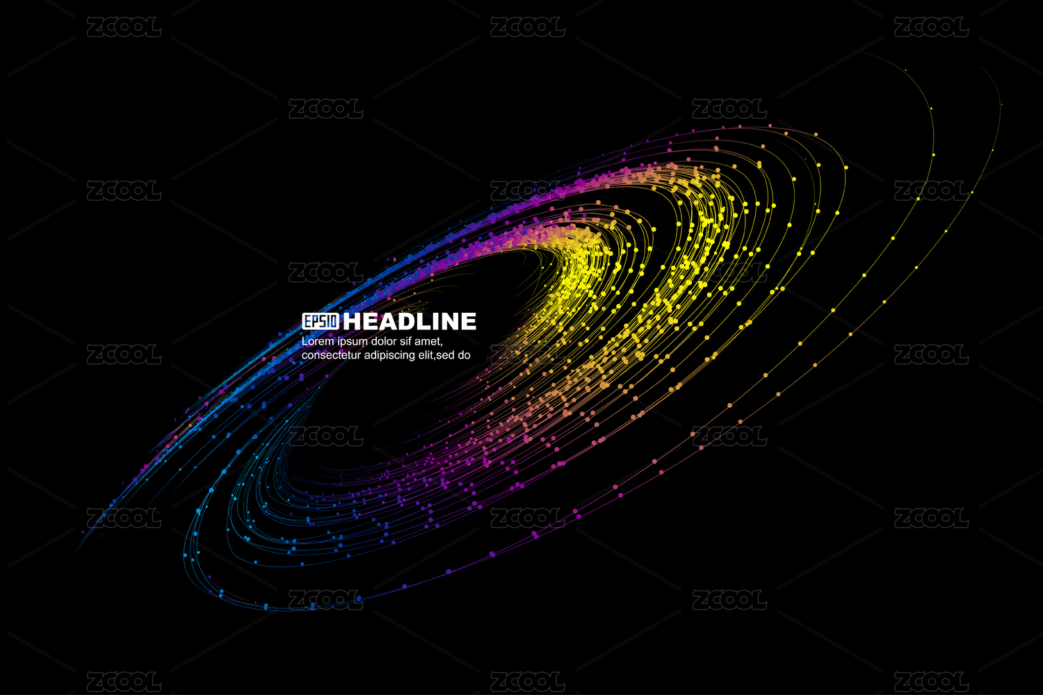 多彩点线粒子漩涡,互联网科技大数据背景。