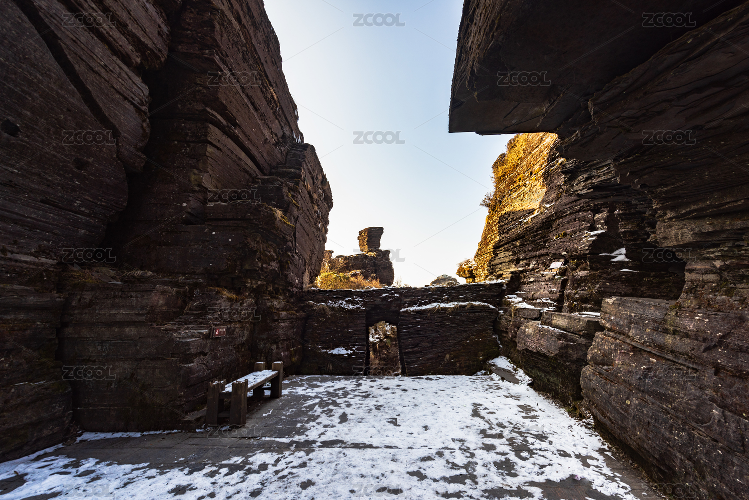 中国贵州铜仁梵净山冬季晴天下的蘑菇石