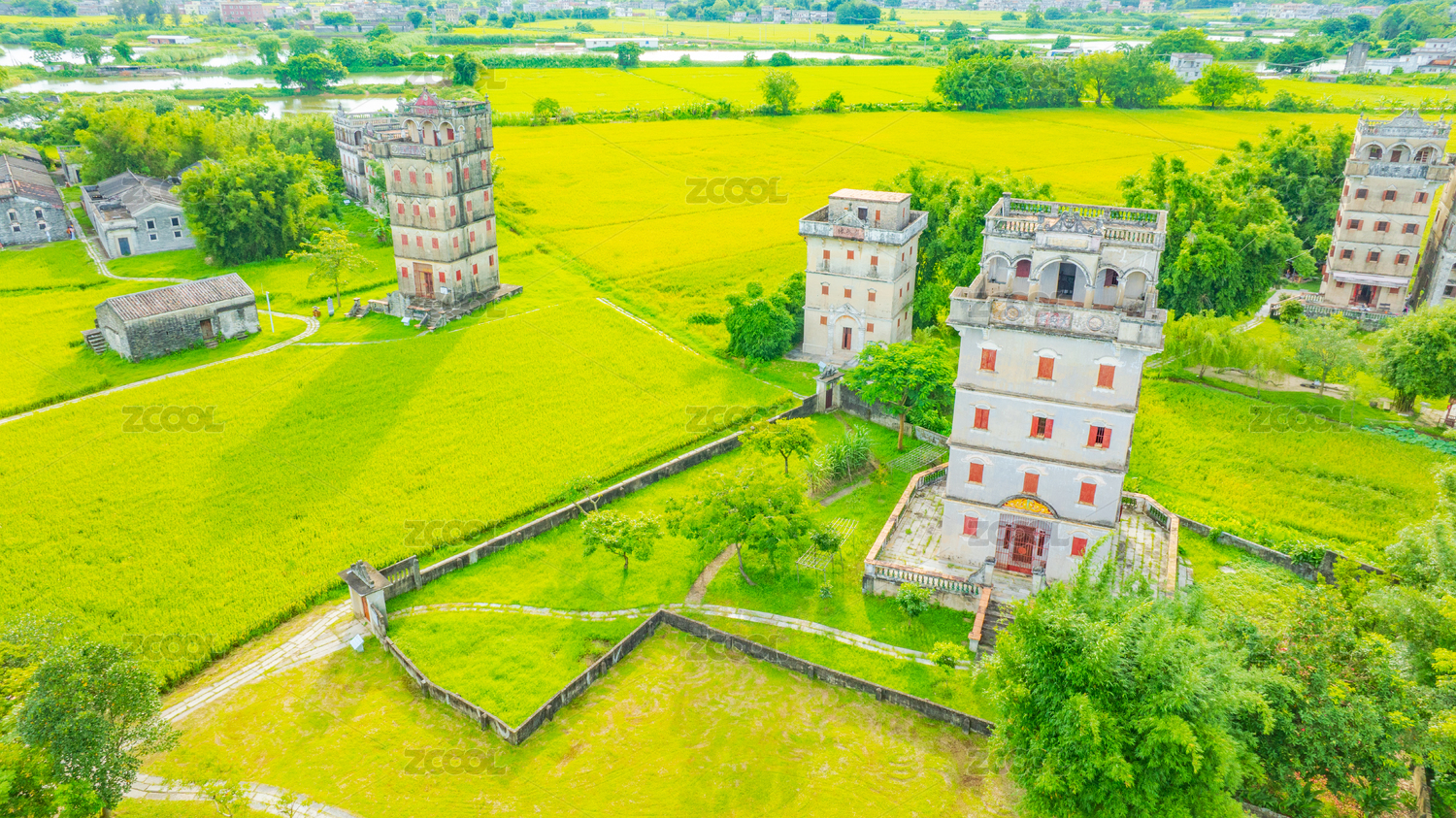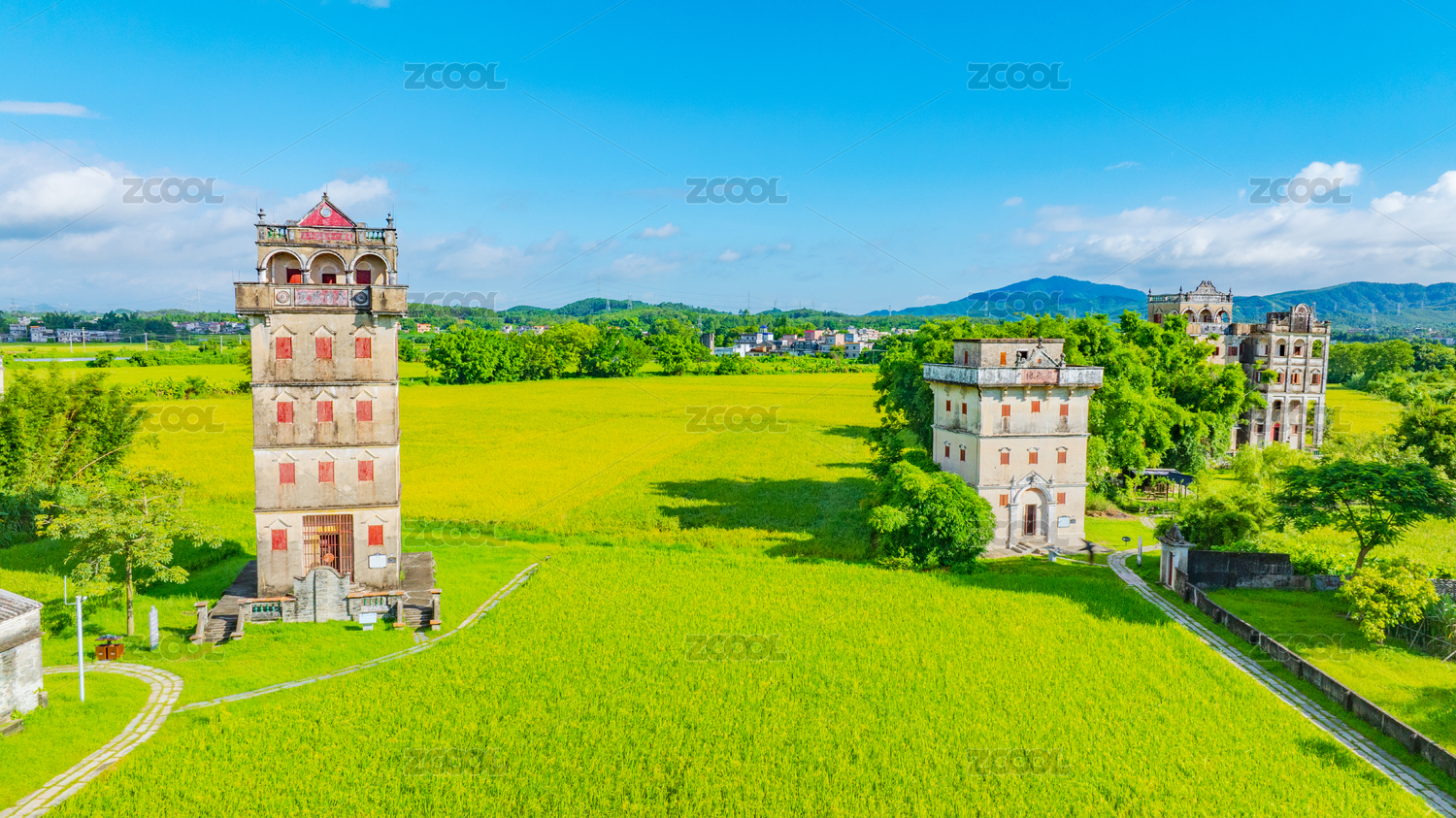 蓝天,晴天,天际线,树,绿色,阳光,侨乡,近现代,村落,乡村