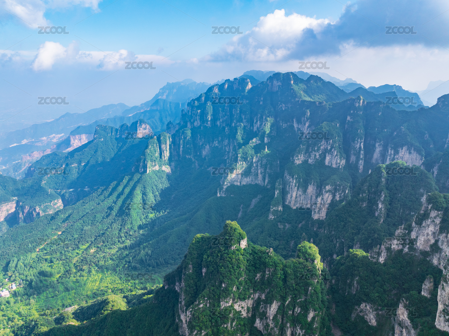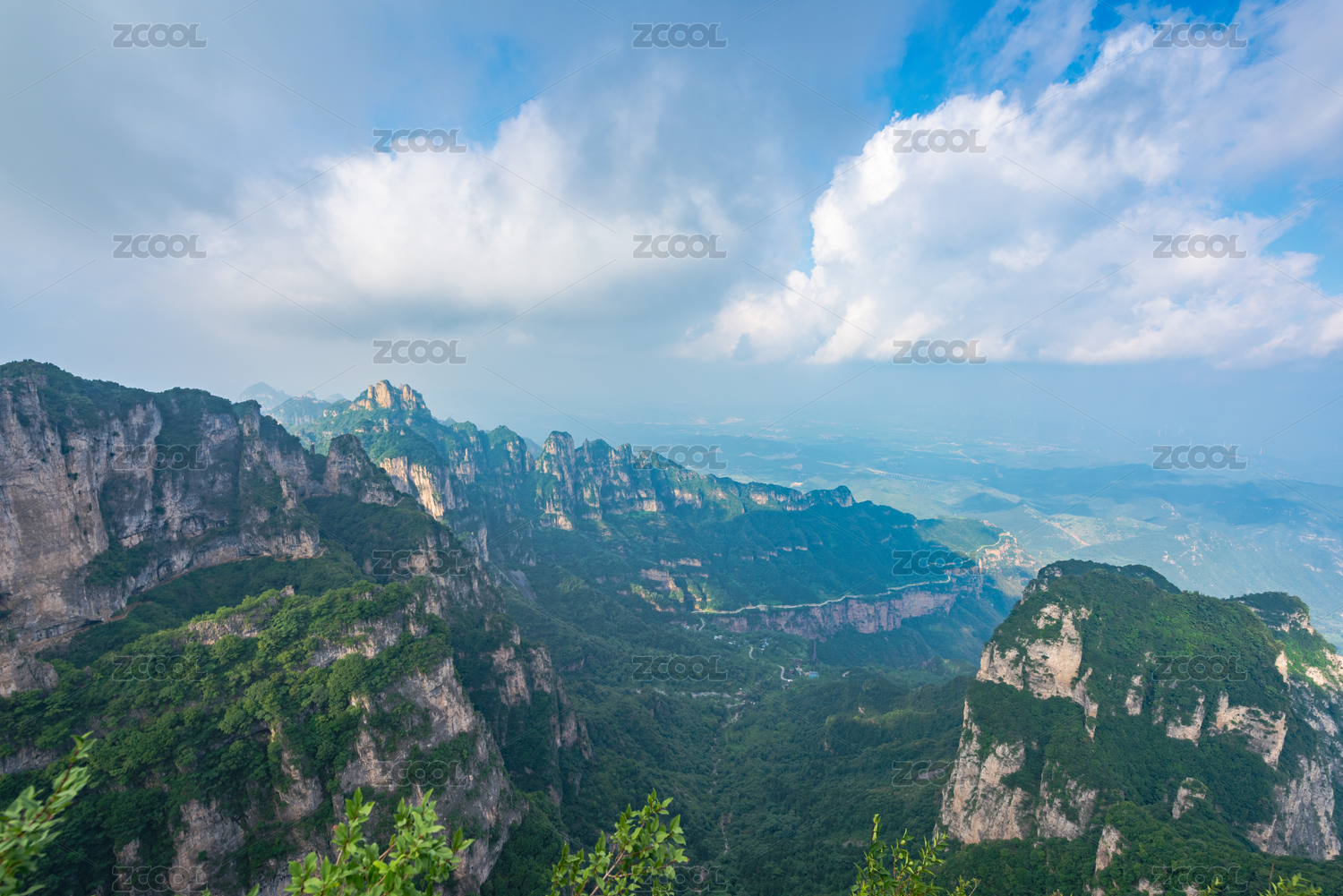 秋天晴空下的中国湖南张家界天门山景区延绵起伏的崇山峻岭