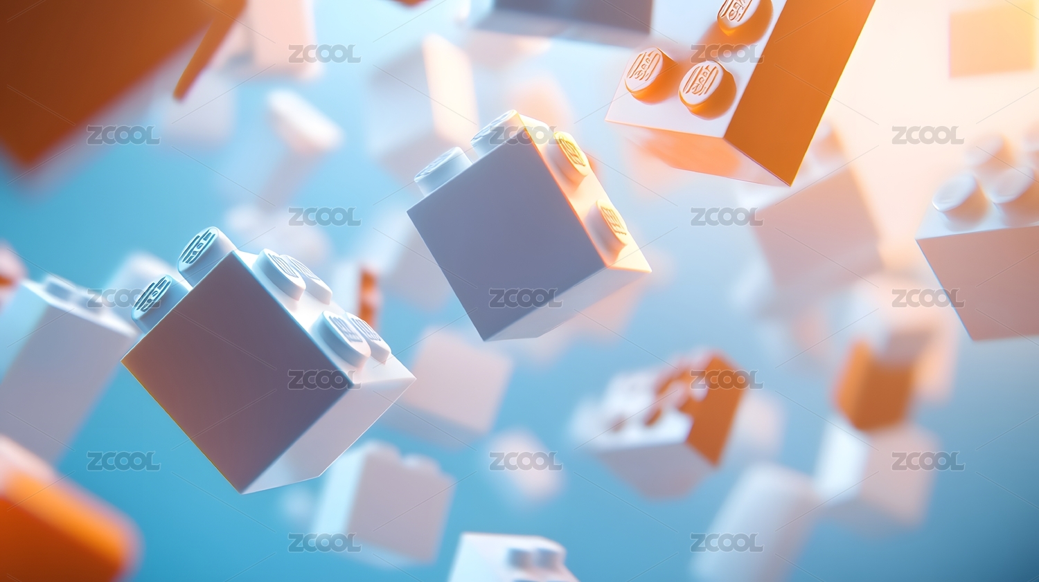 数码科技蓝绿色抽象方块海报网页PPT背景