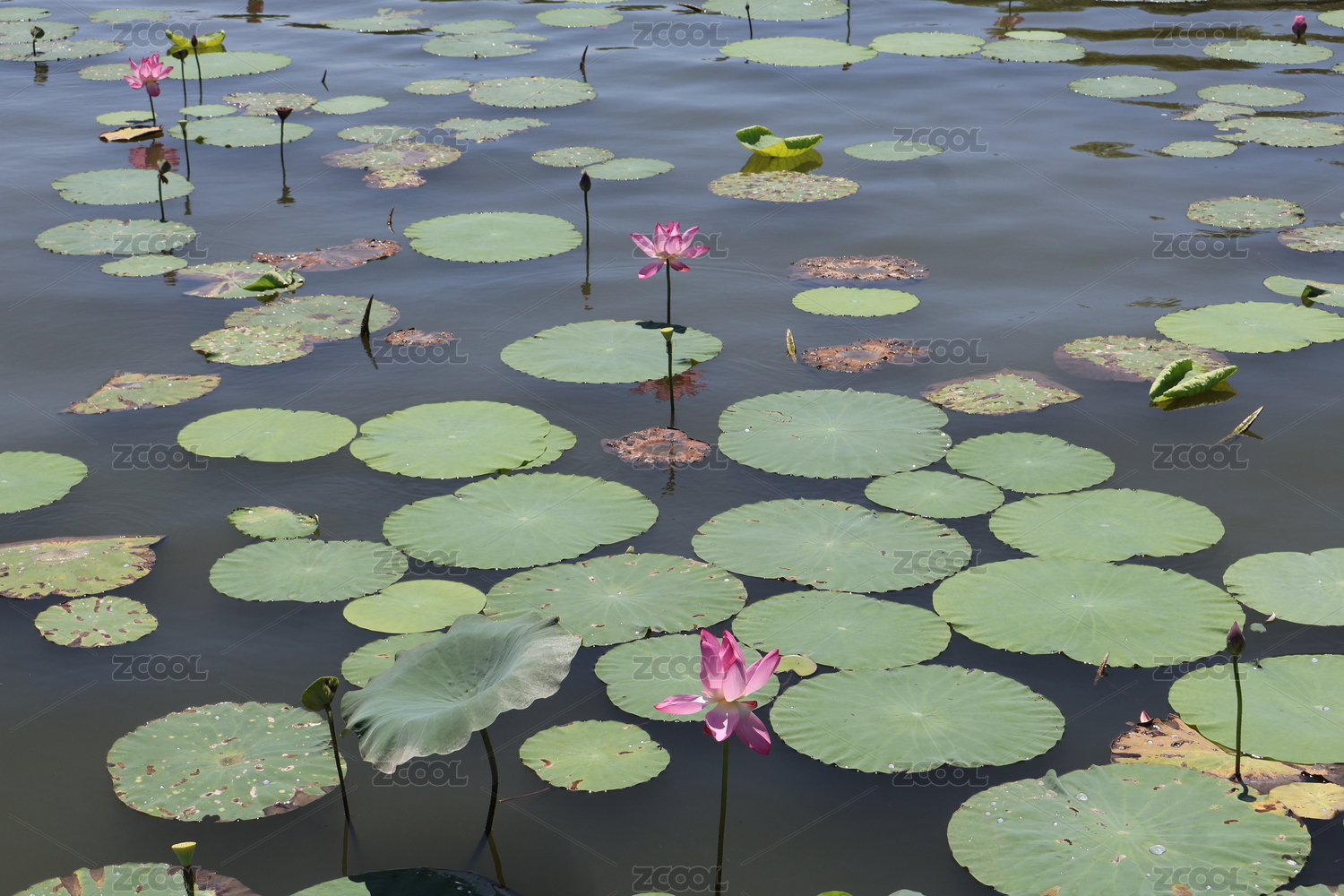 夏天池塘里绿色植物睡莲荷花风景的背景图
