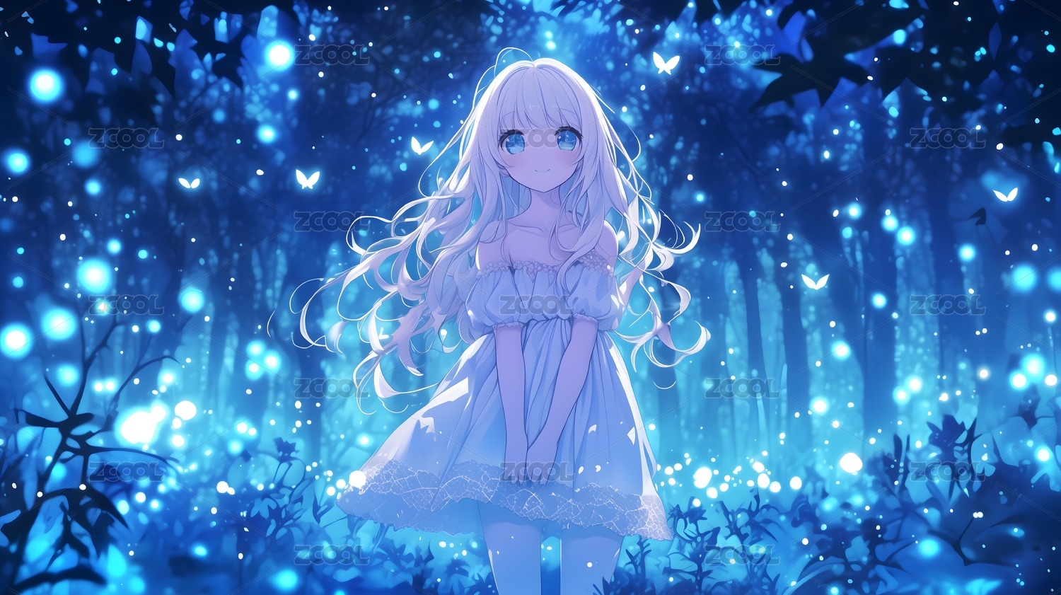 可爱的动漫女孩缤纷的色彩壁纸背景