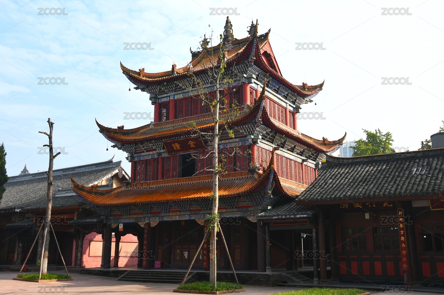 中国四川成都龙潭水乡复古风格建筑 龙潭阁