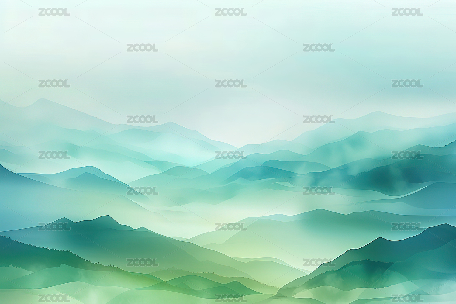 晨雾中的山脉景观背景插画