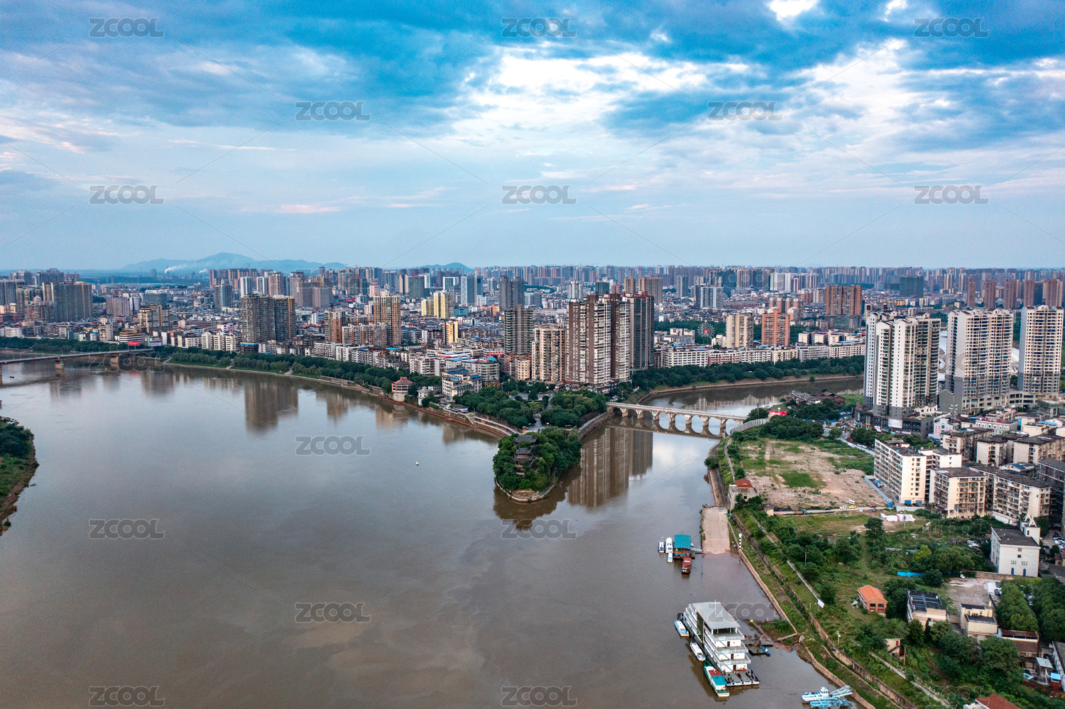 湖南衡阳湘江河城市风光