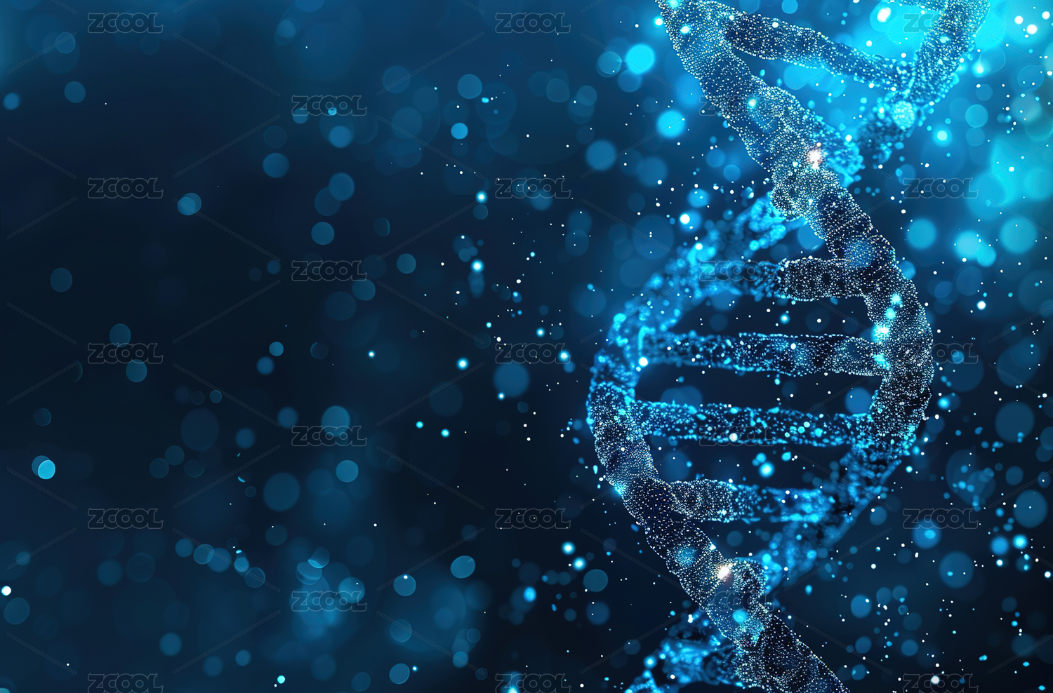 蓝色背景微观世界里的DNA 染色体螺旋结