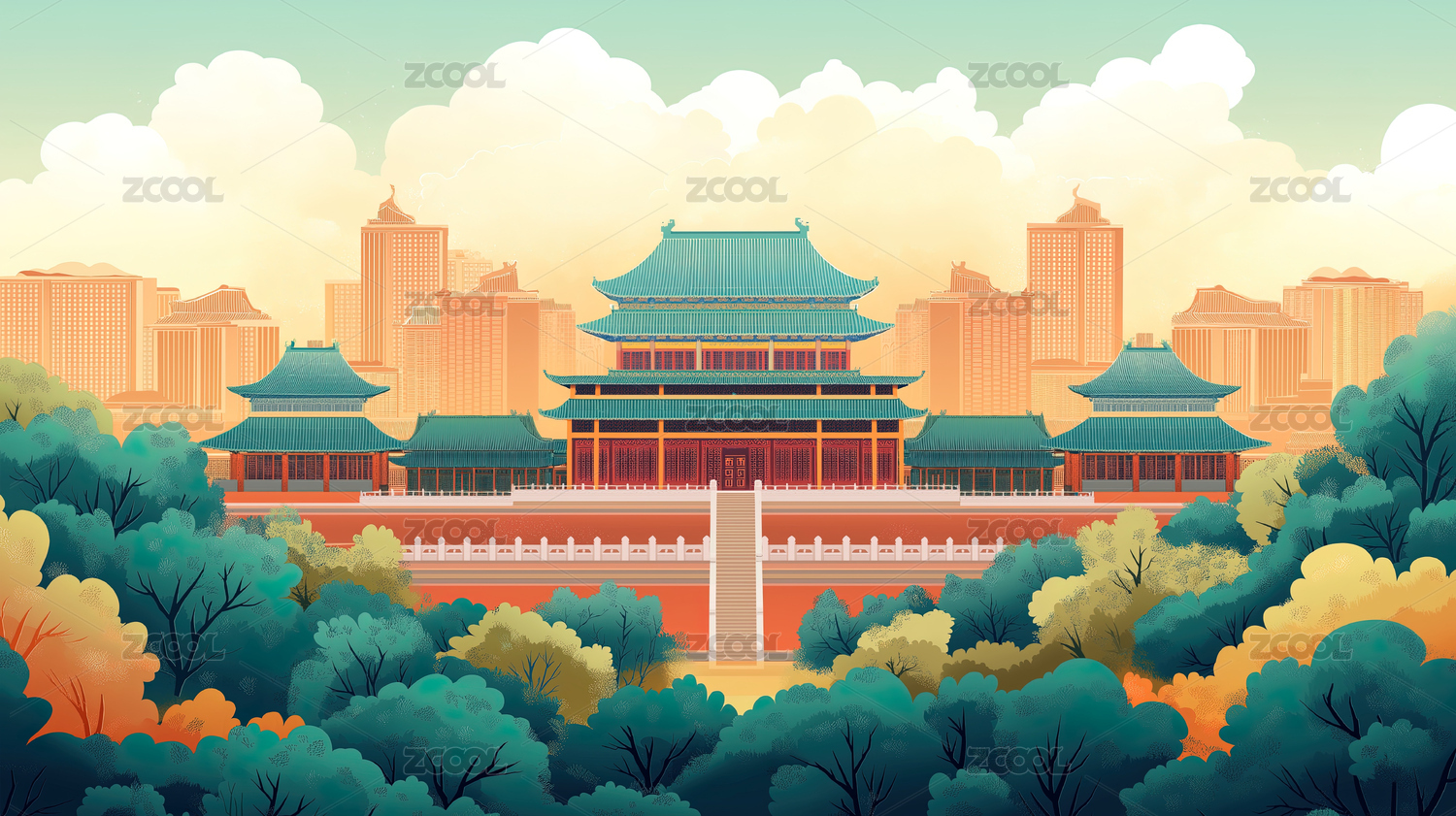 简约中国风宫殿插画