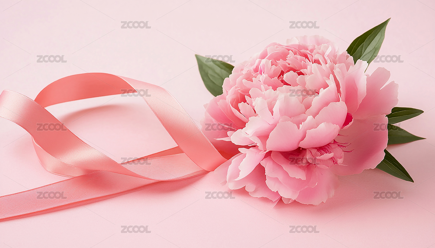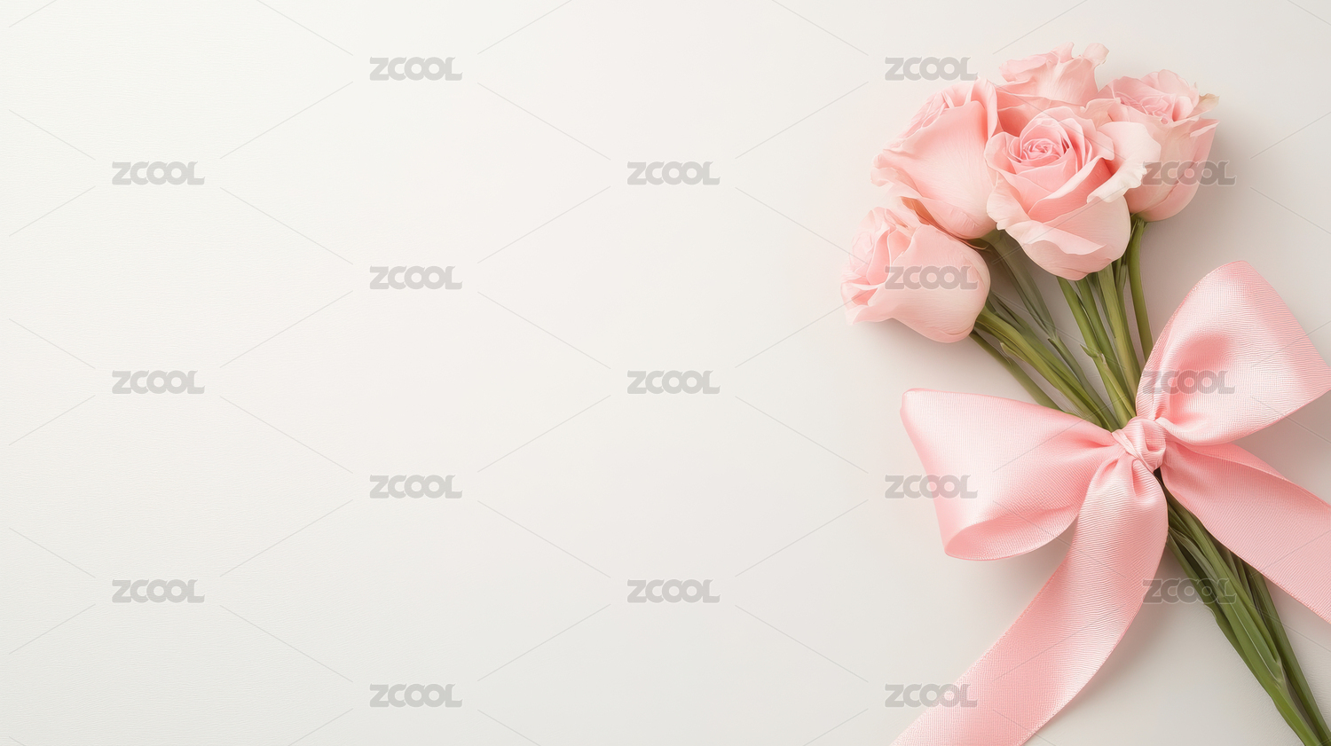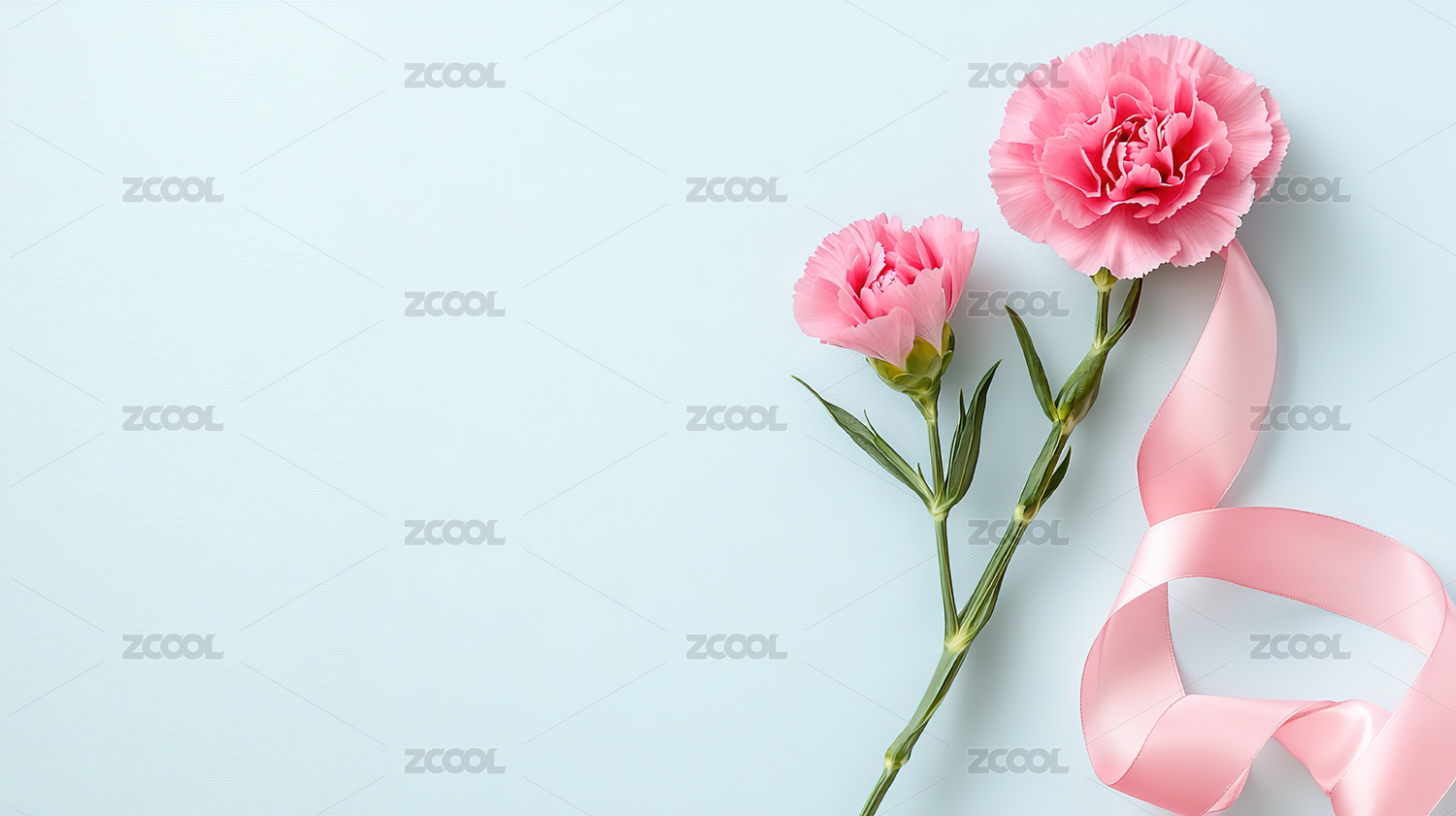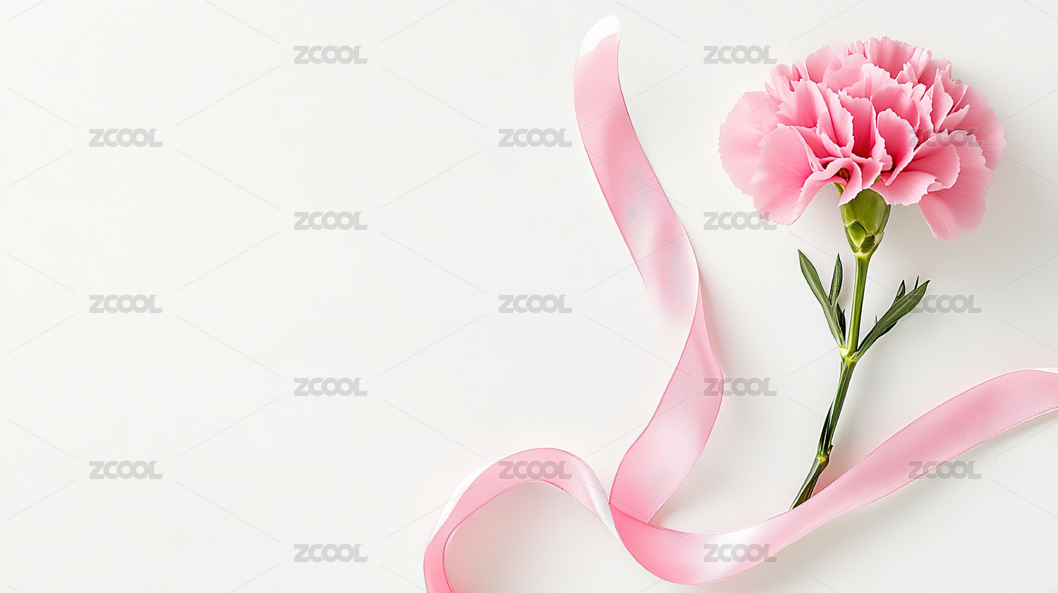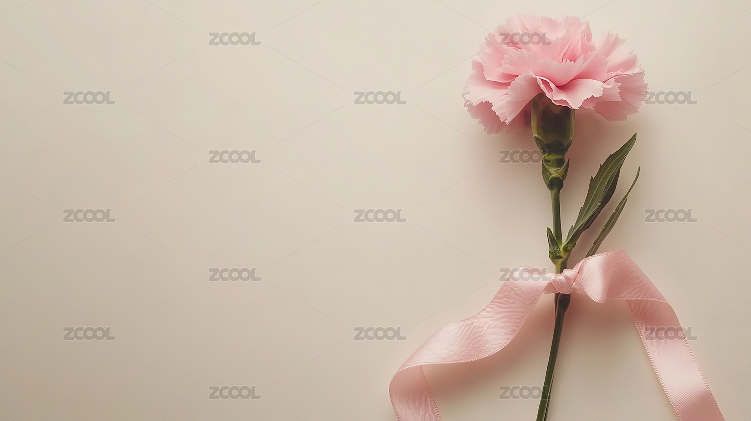 浅粉康乃馨配丝带白背景花艺摄影素材