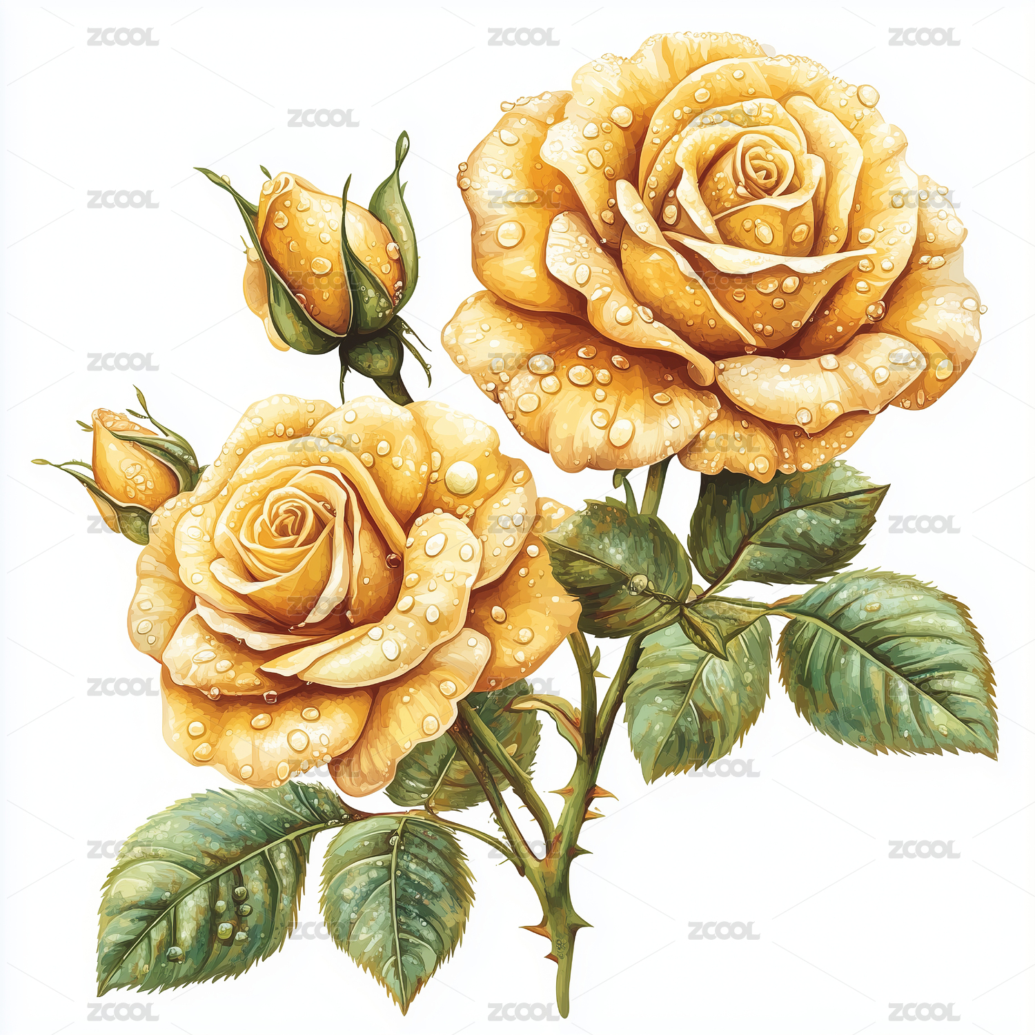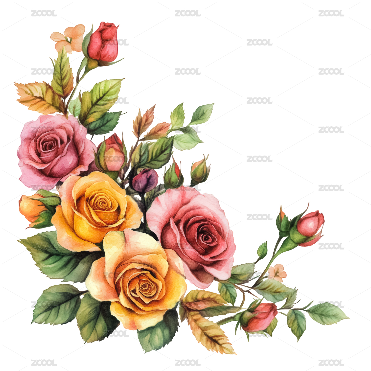 唯美自然花卉装饰画玫瑰鲜花插画图案