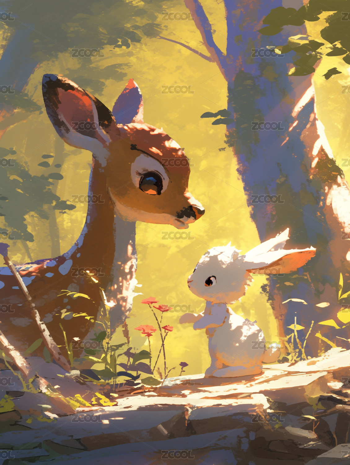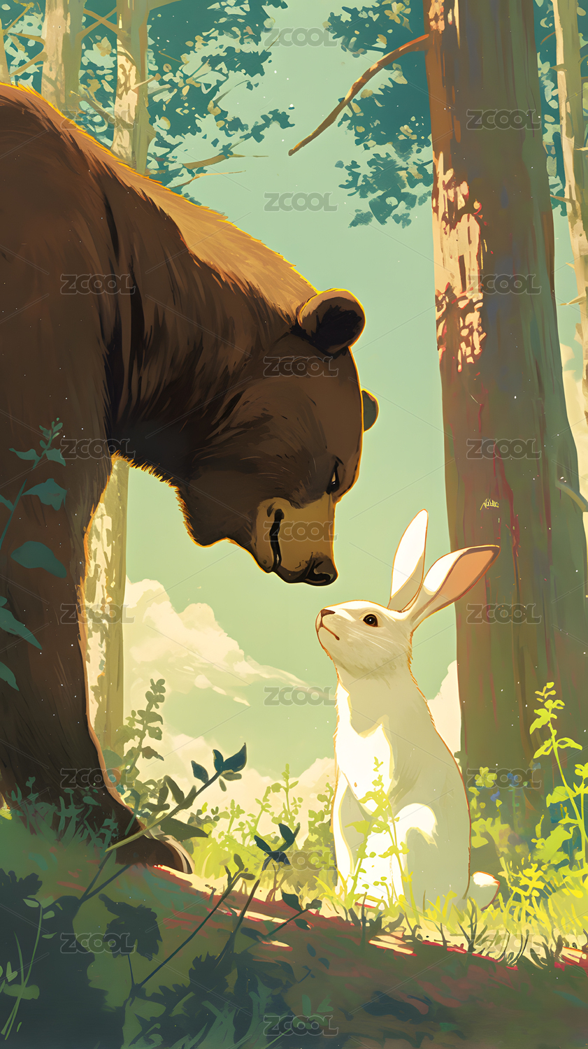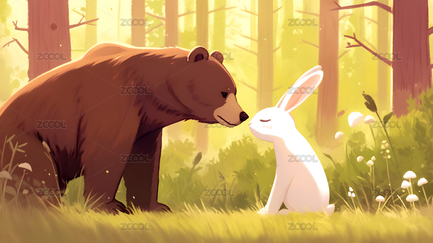 童话,森林,动物,小熊,熊,卡通,插画,风景