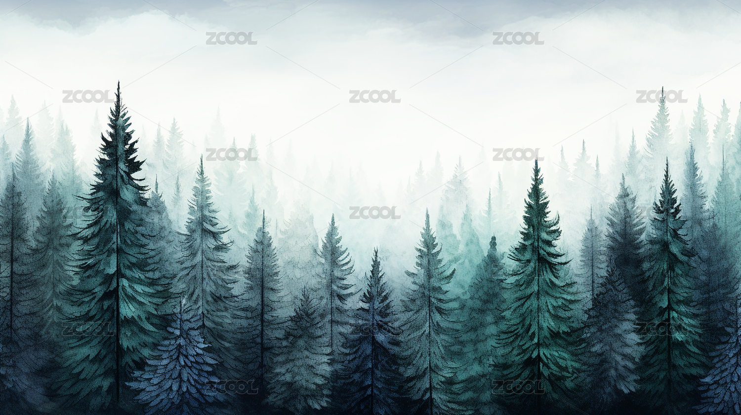 水彩森林插画