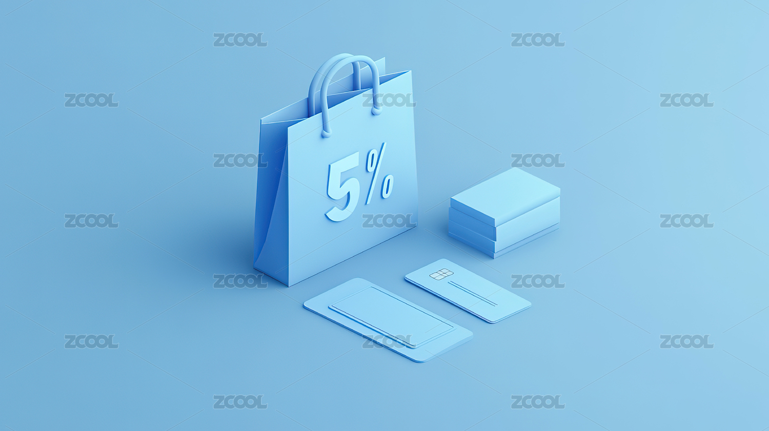 购物袋与打折券3D渲染