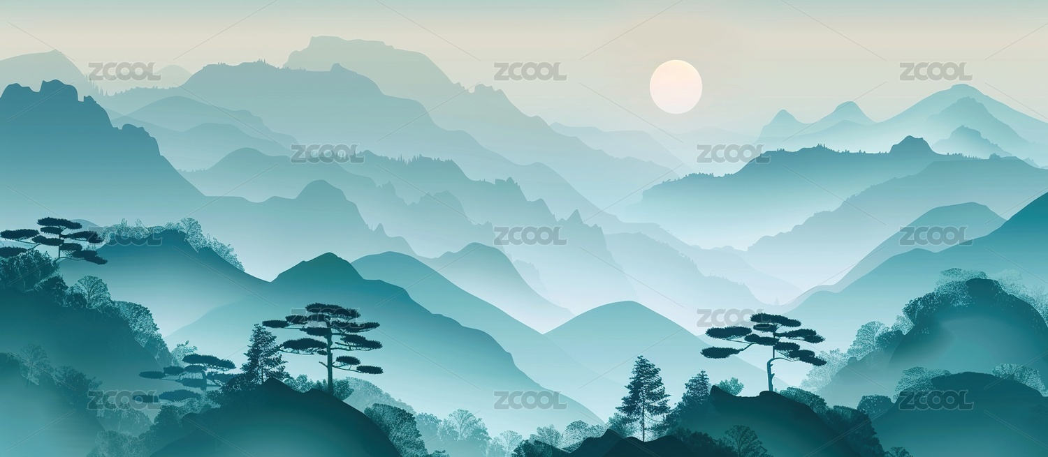 水墨画,背景,设计,壁纸,海报,高山,山川,光,自然,户外