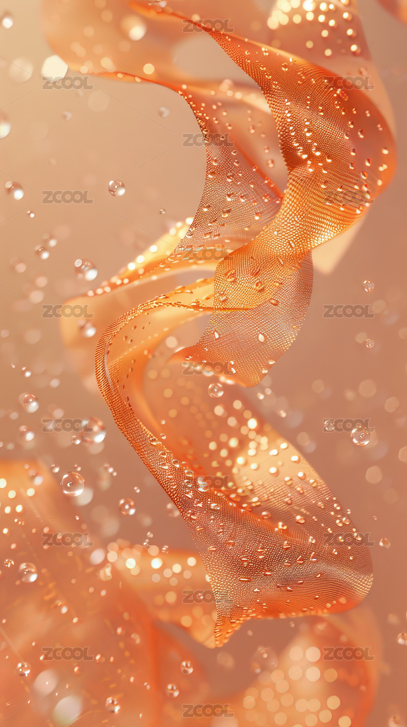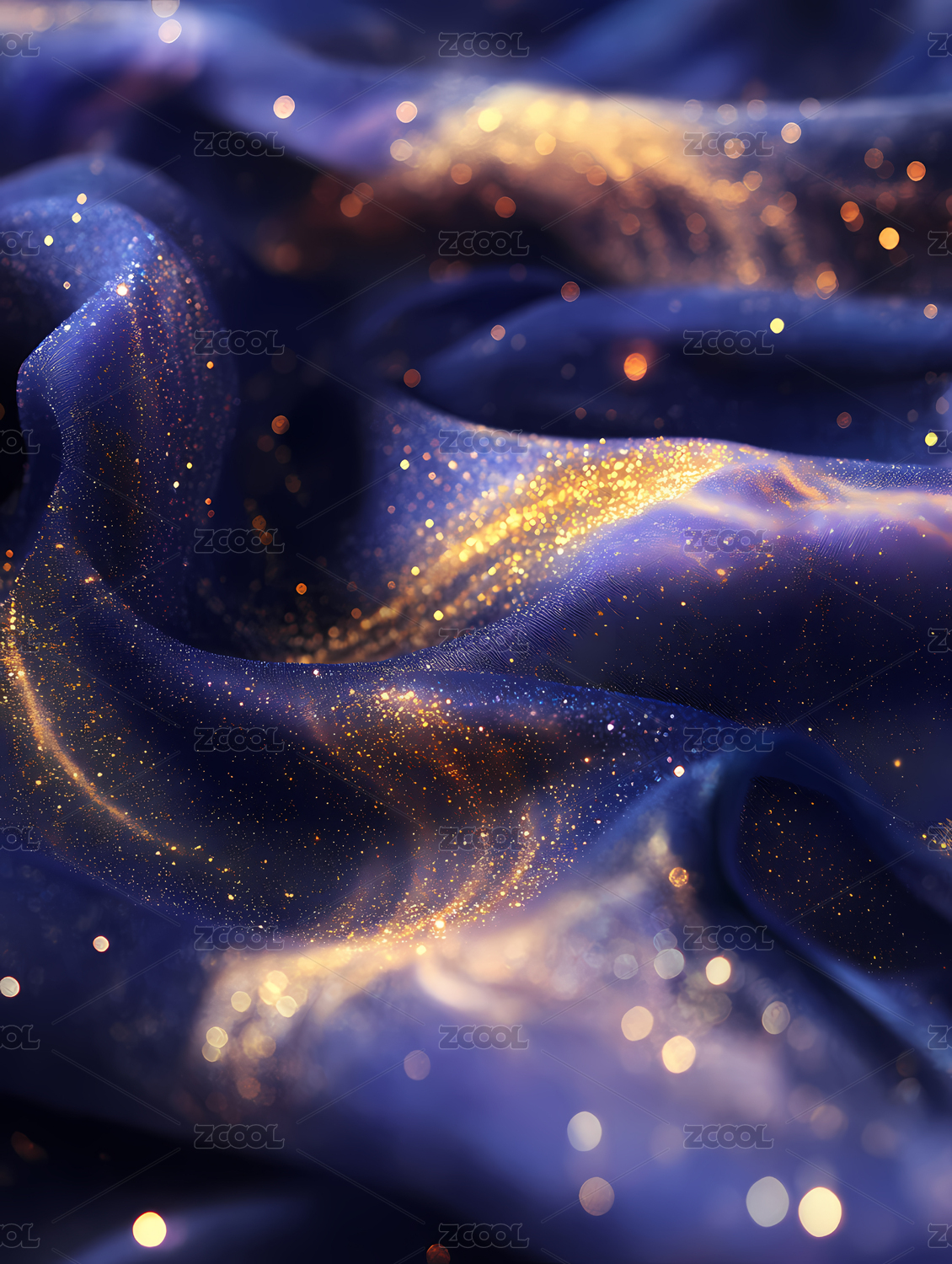 有彩色晶体宝石的金线紫色丝绸3D立体插画