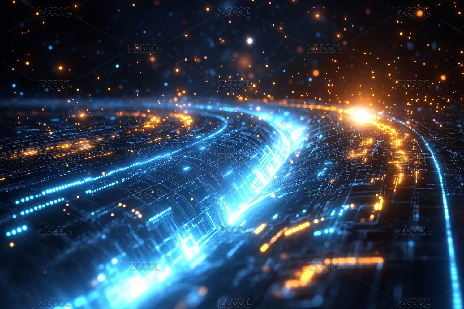 蓝色六边形框架背景设计,3D渲染的灯光科
