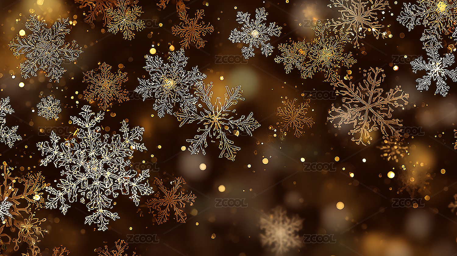 圣诞背景有金色雪花和散景灯