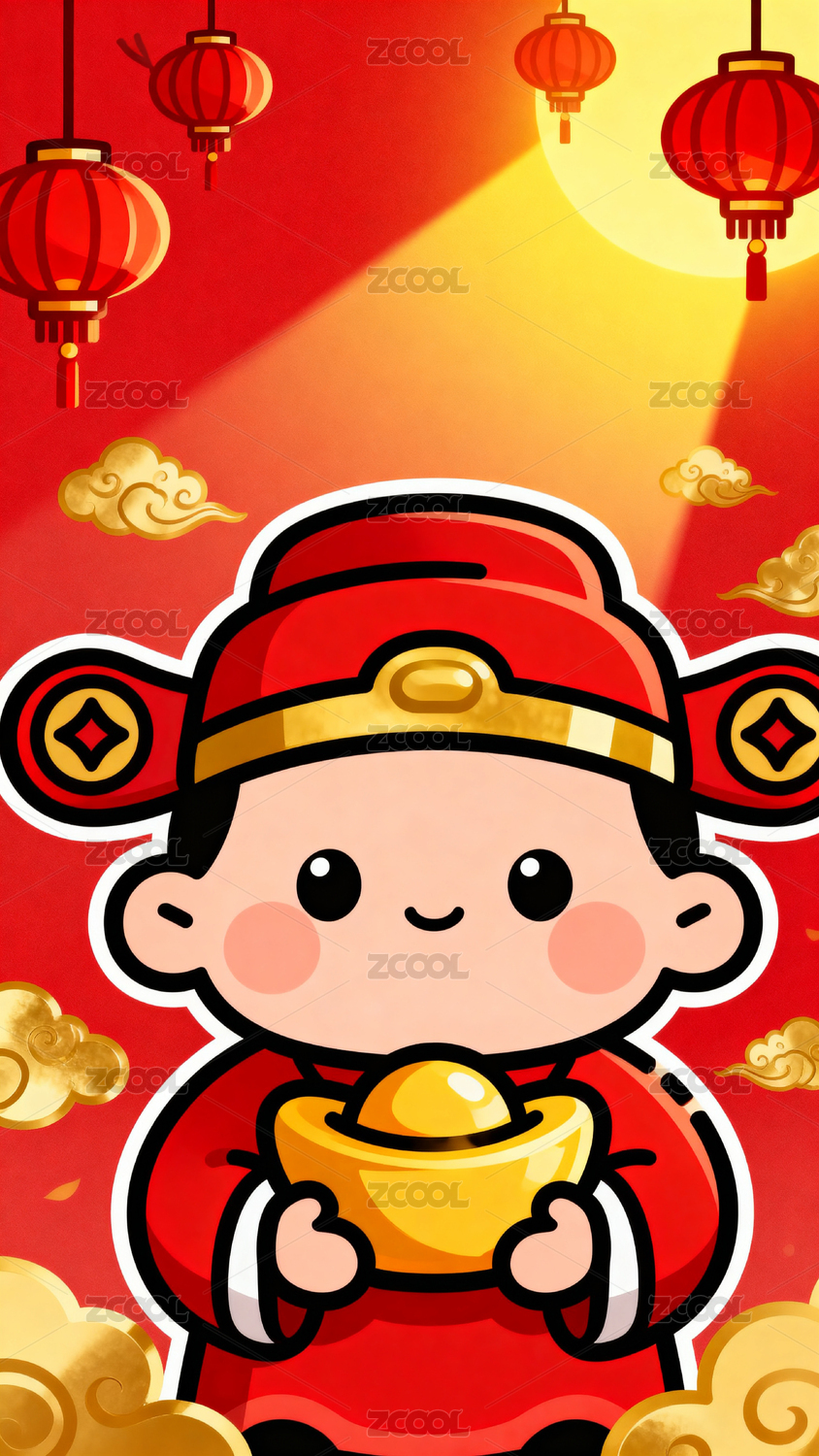 国潮可爱卡通财神送元宝元素