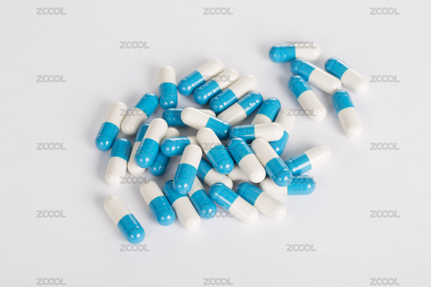 蓝色的胶囊在白色的背景上