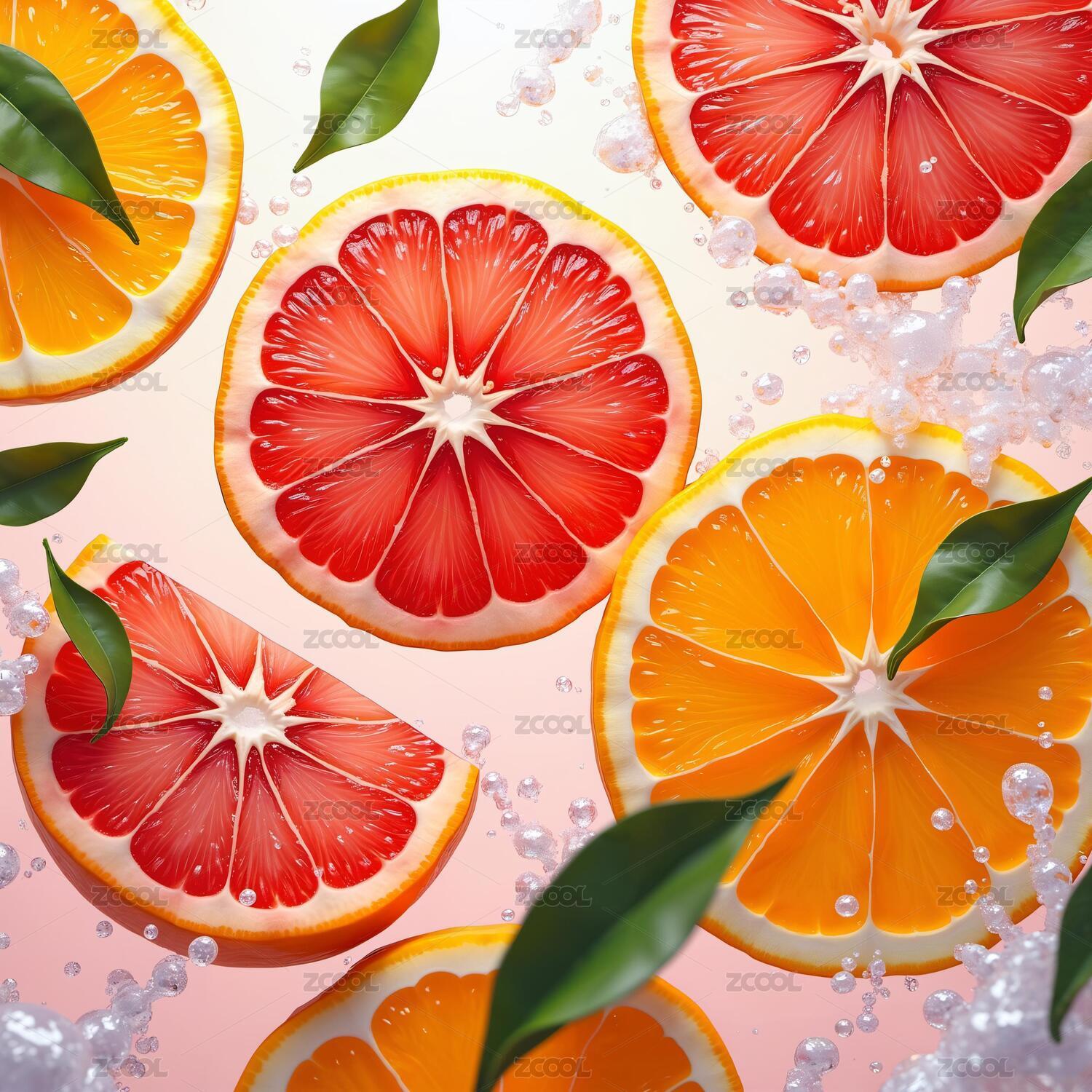 切片柑橘与水珠的清新组合