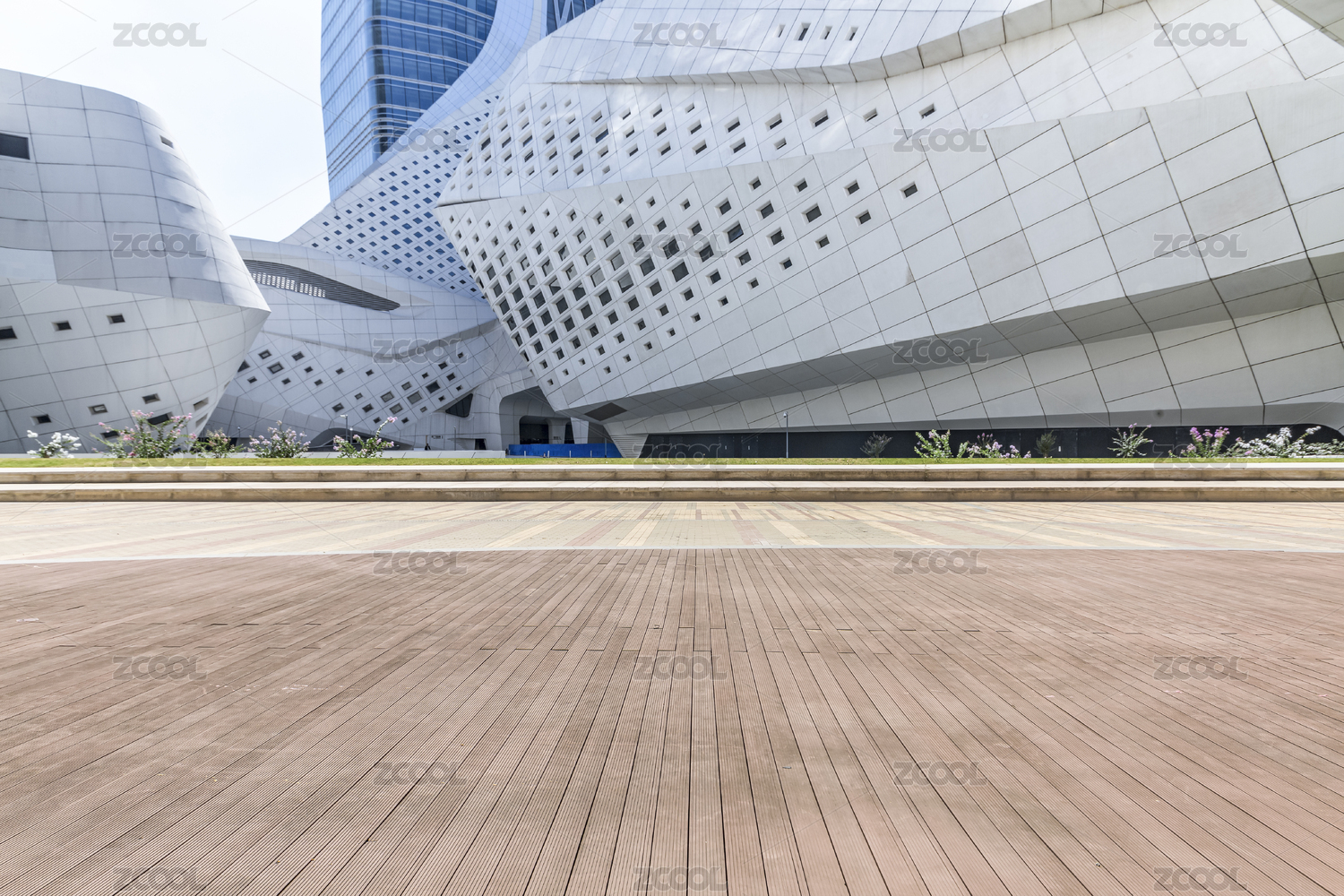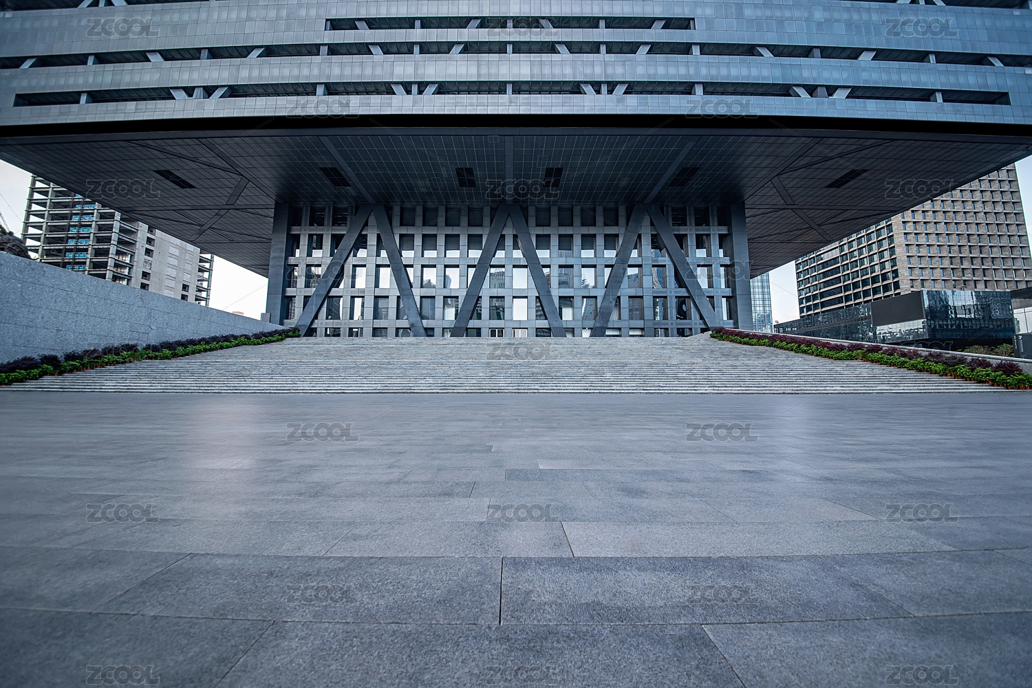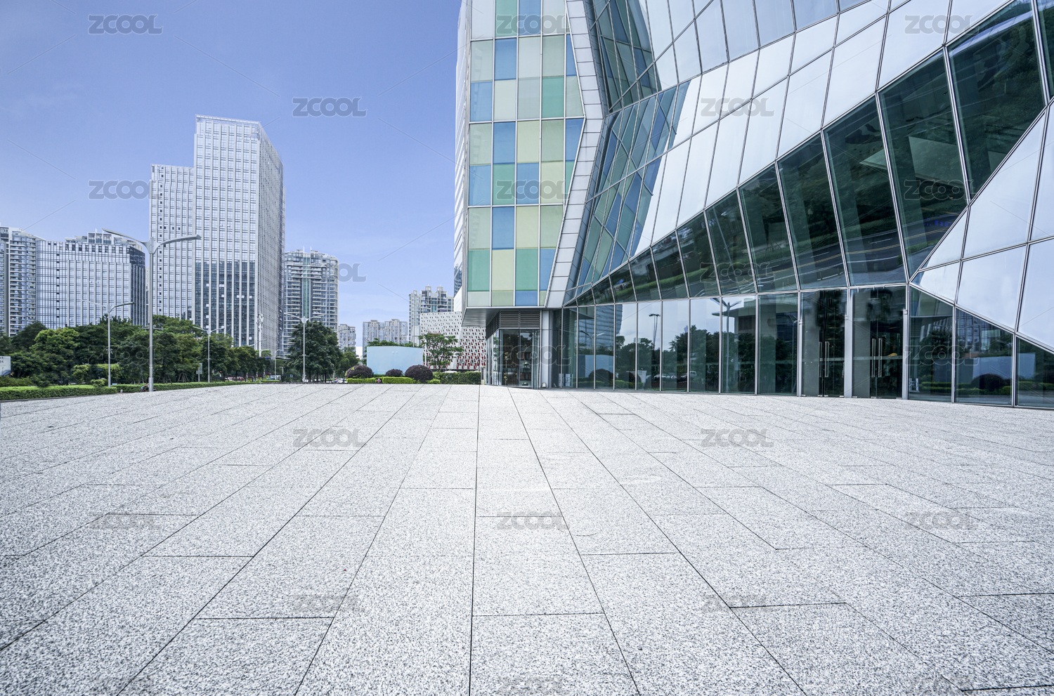 现代城市建筑和大理石路面广场