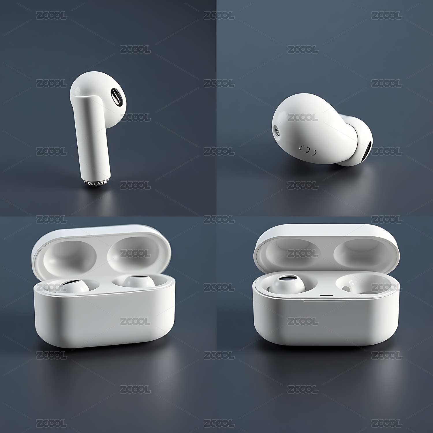 无线耳机3D渲染,听音乐娱乐的概念插图
