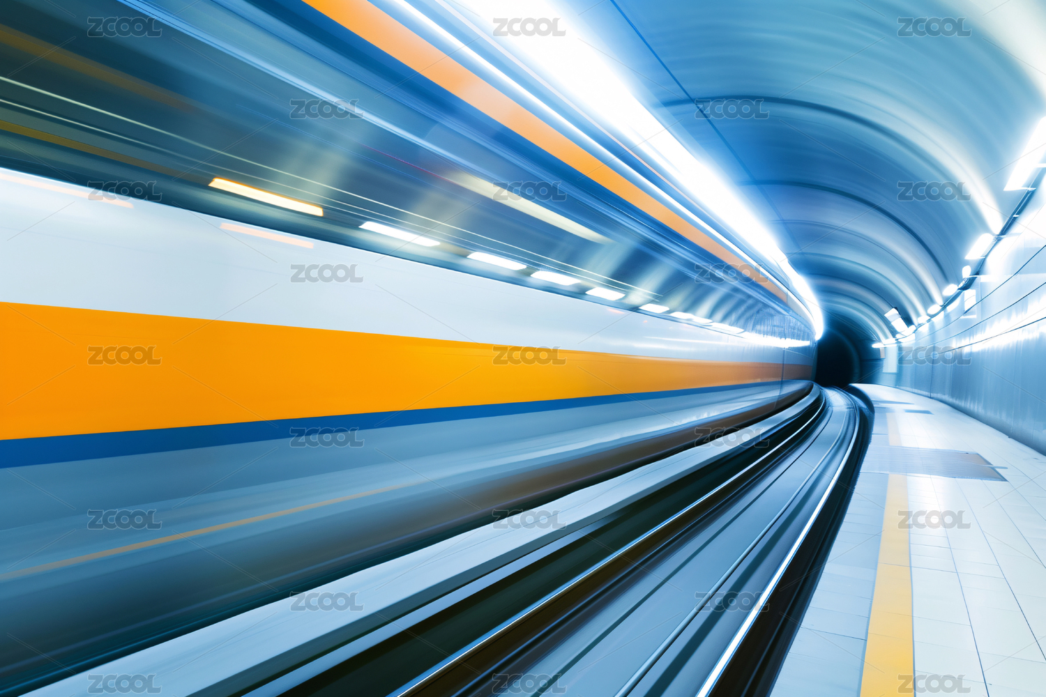 地铁隧道列车飞驰瞬间