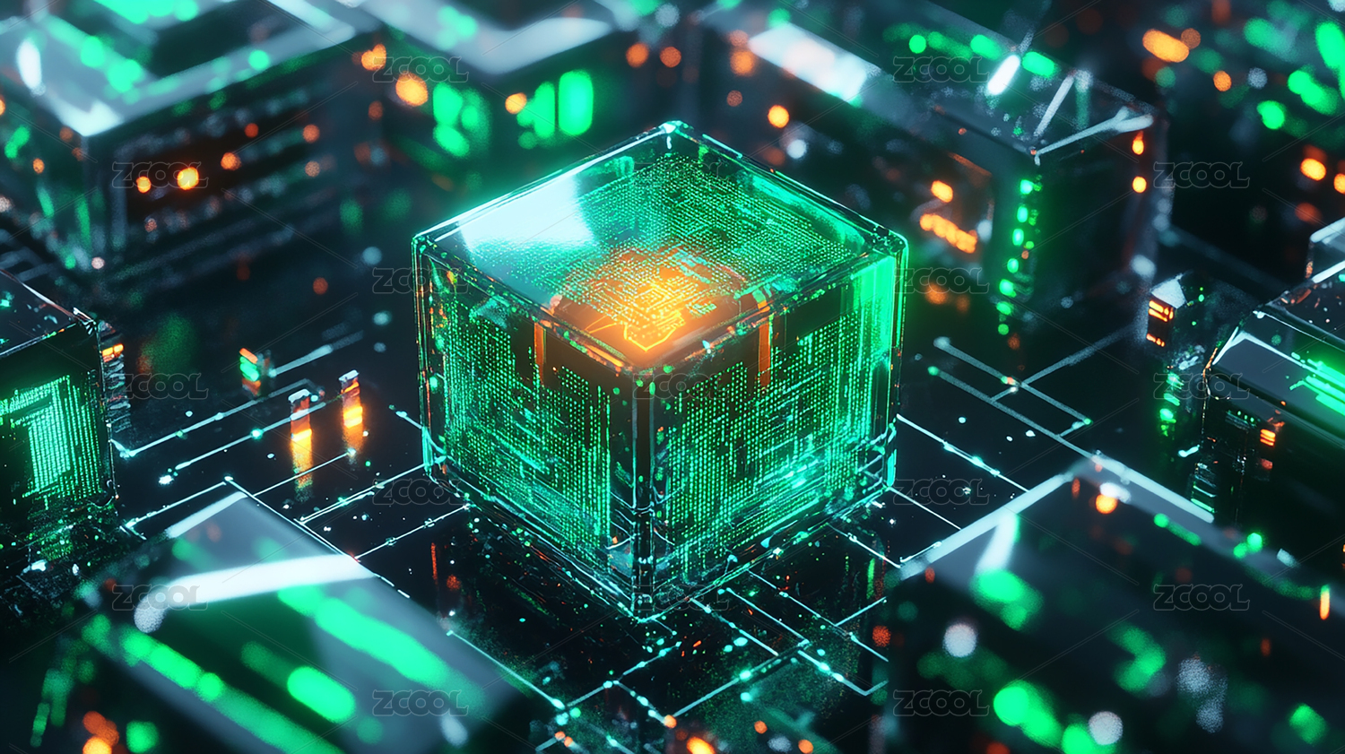 发光立方体科幻场景