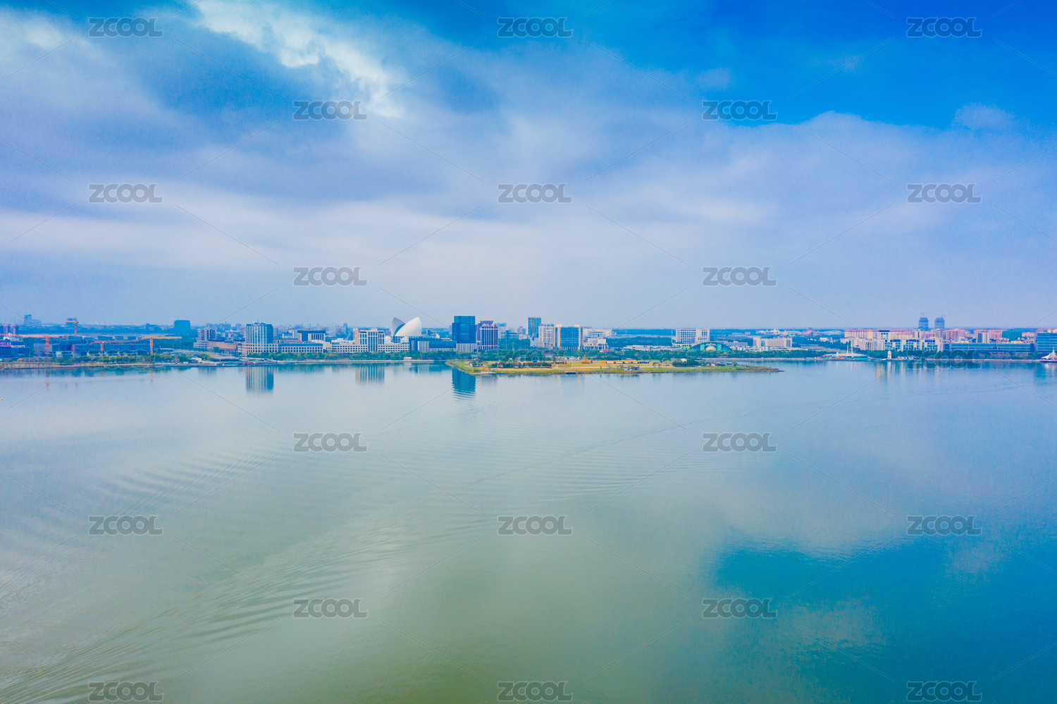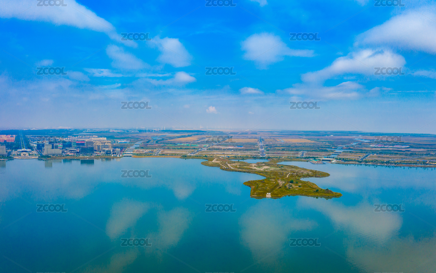 滴水湖,航拍,上海,浦东新区,人工湖,湖泊,美丽,旅游,蓝天,白云