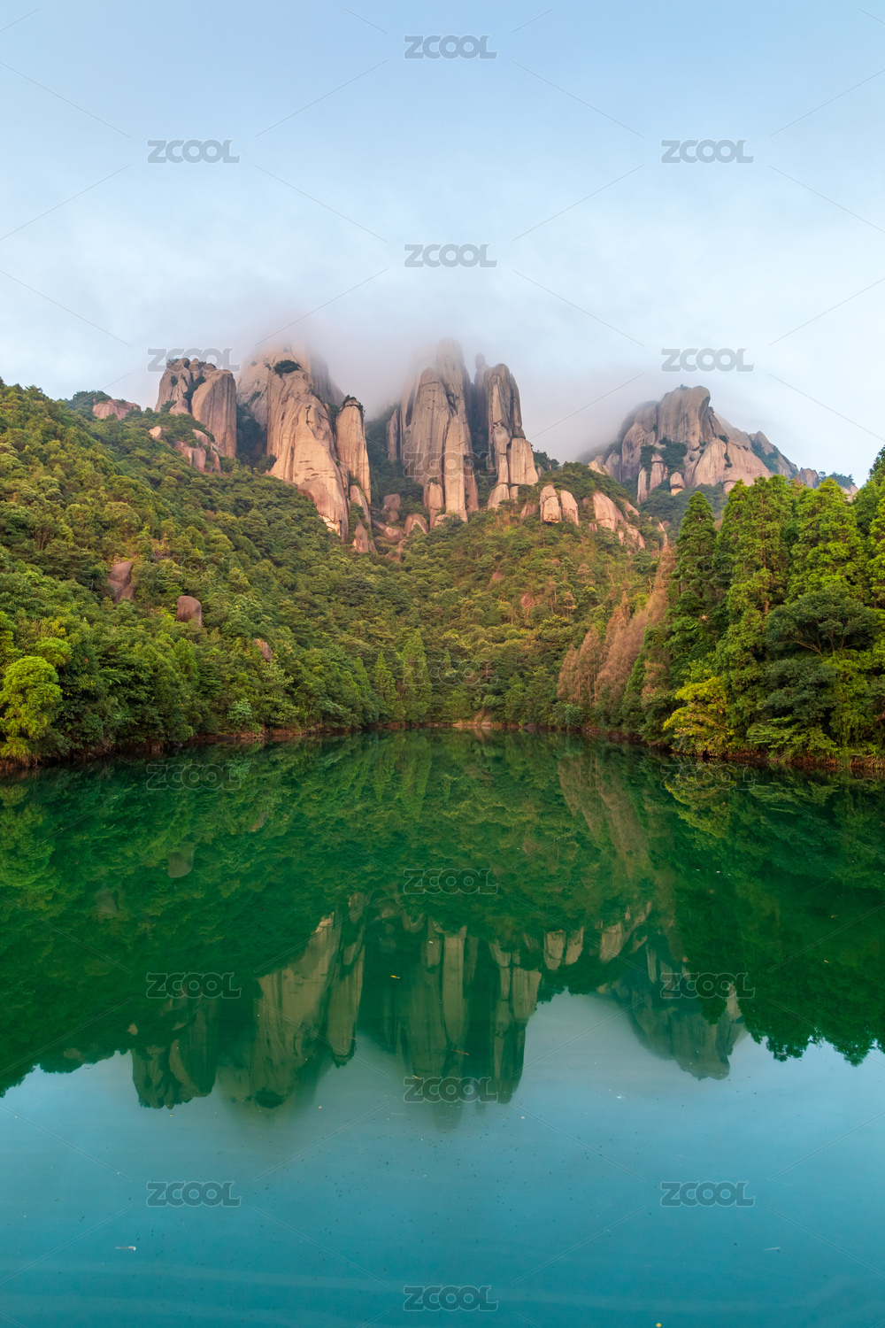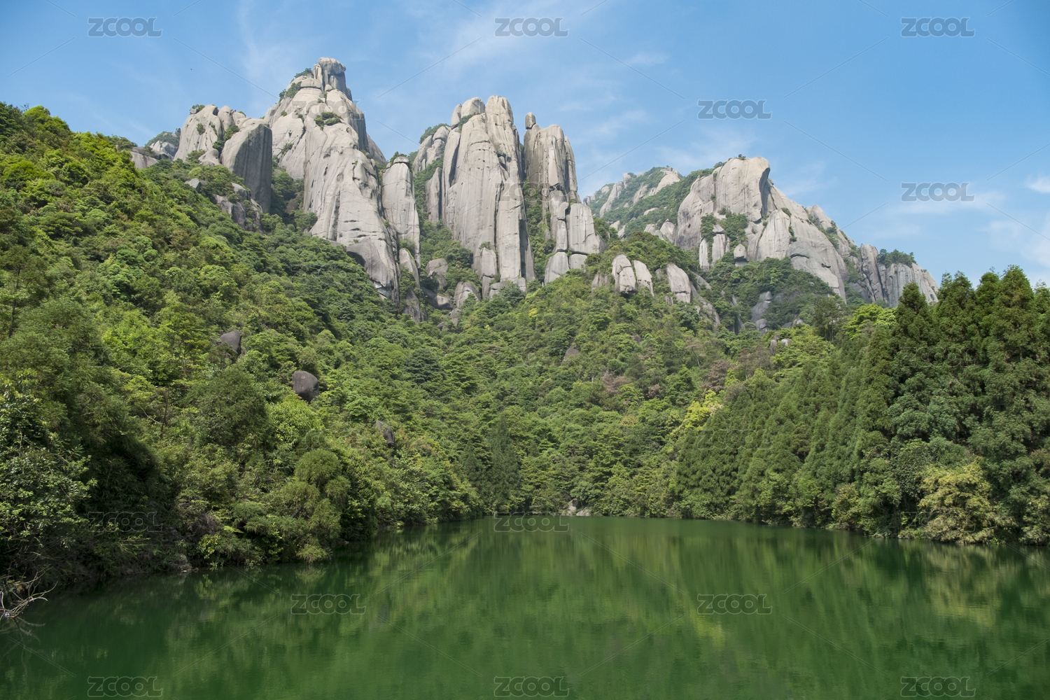 中国福建省福鼎市太姥山,自龙潭湖远观摩霄峰。