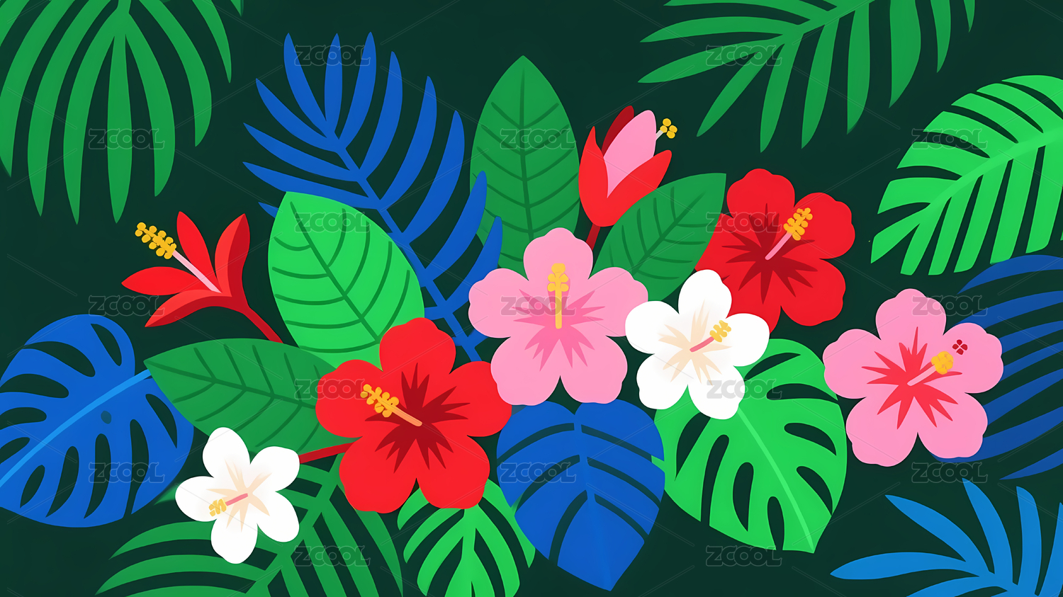 热带花朵与绿叶的生机图案