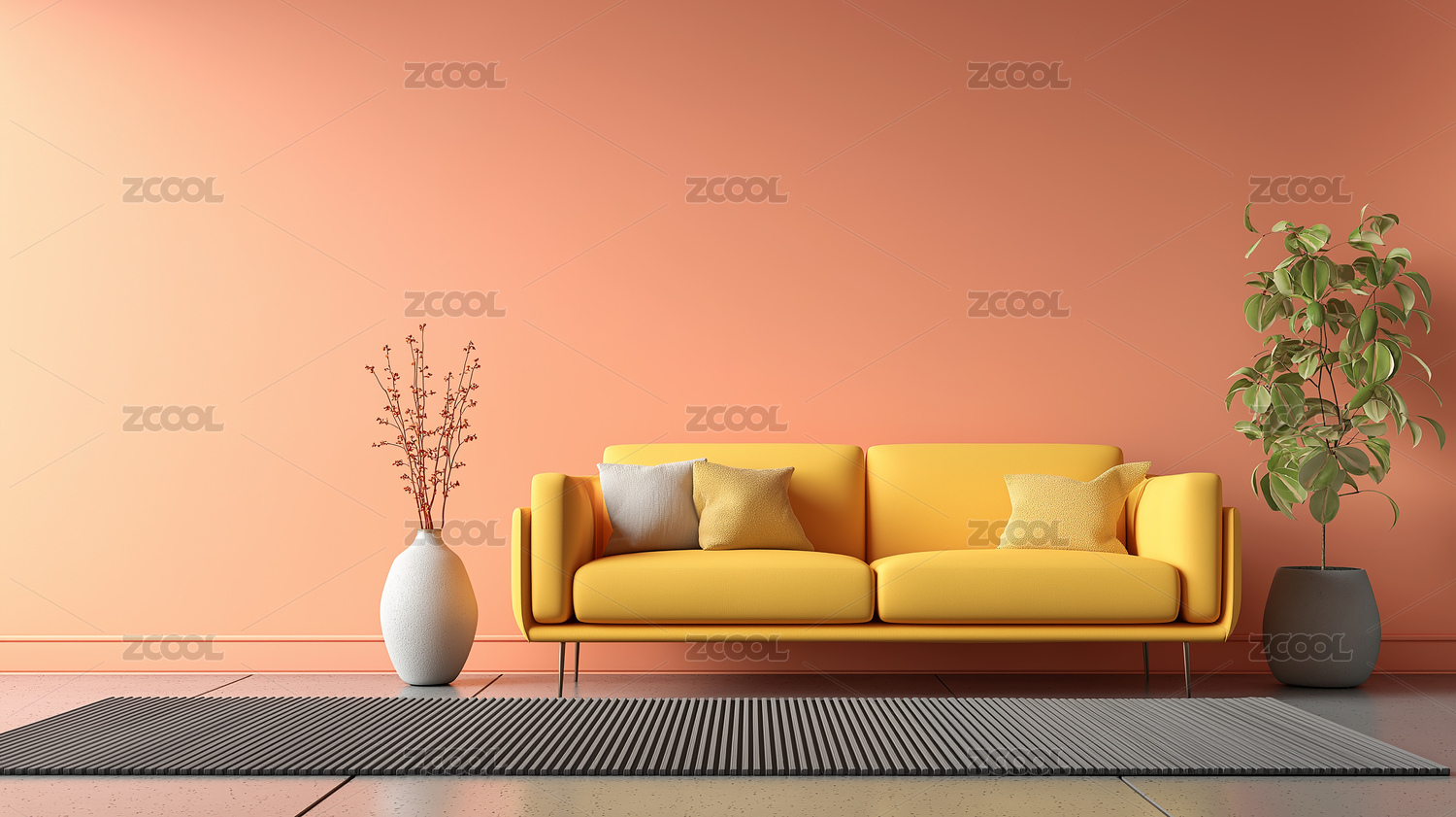 沙发、墙壁、绿植,极简主义多彩的室内设计
