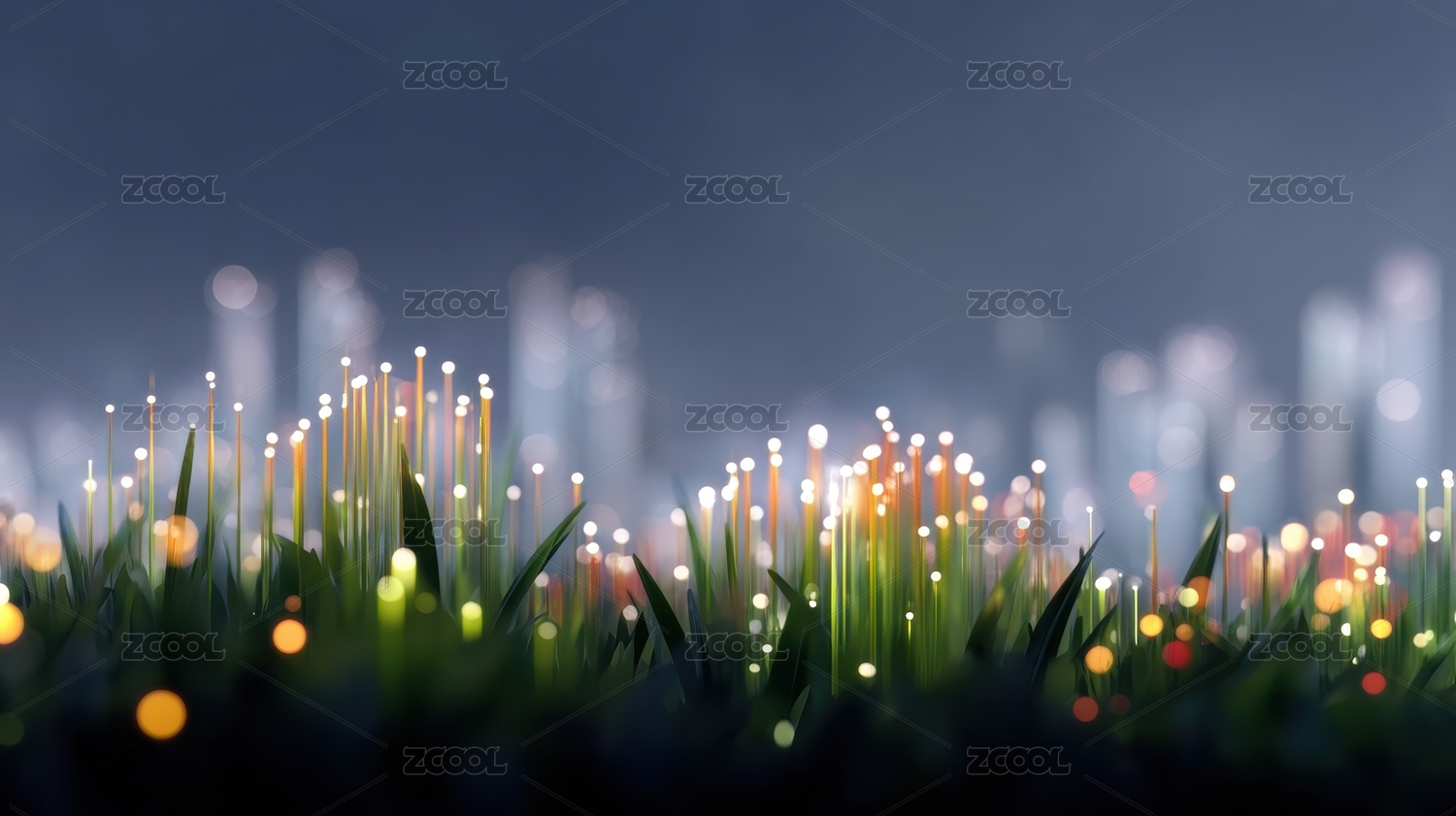 城市夜景中的荧光草丛