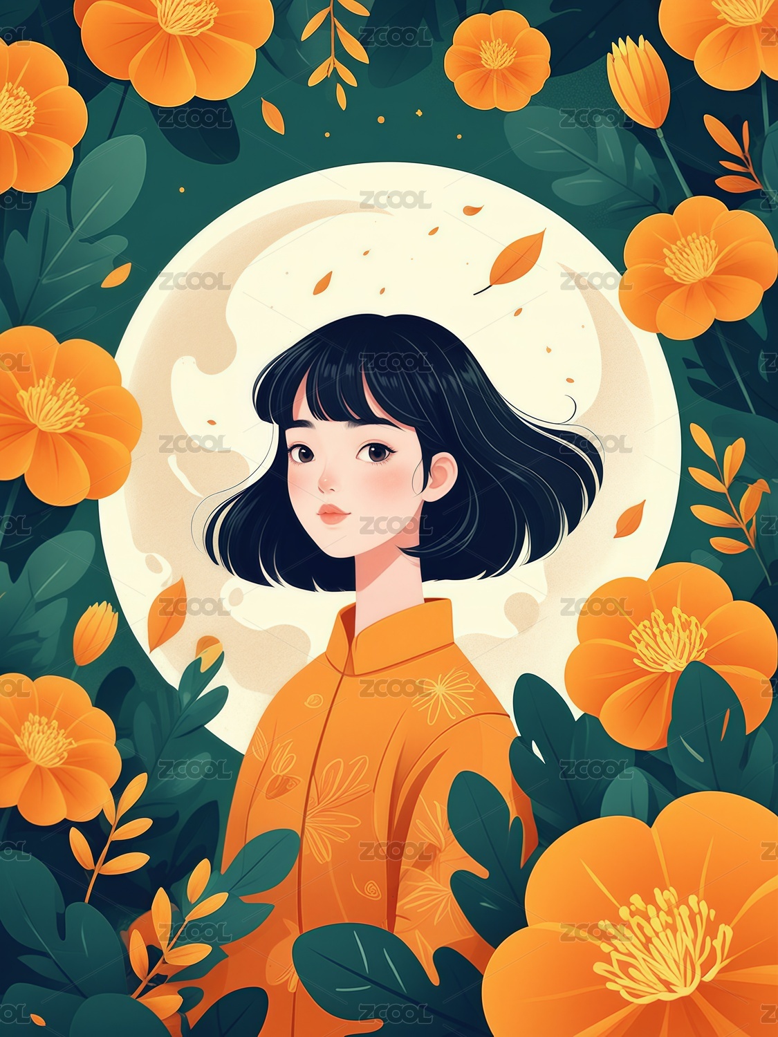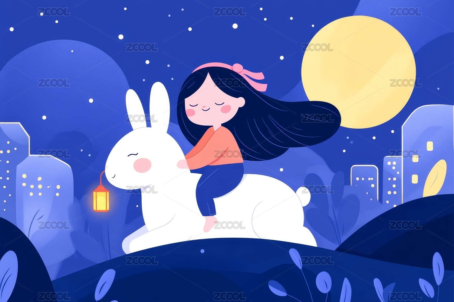 庆祝中秋节嫦娥玉兔传统节日中国风古风插画