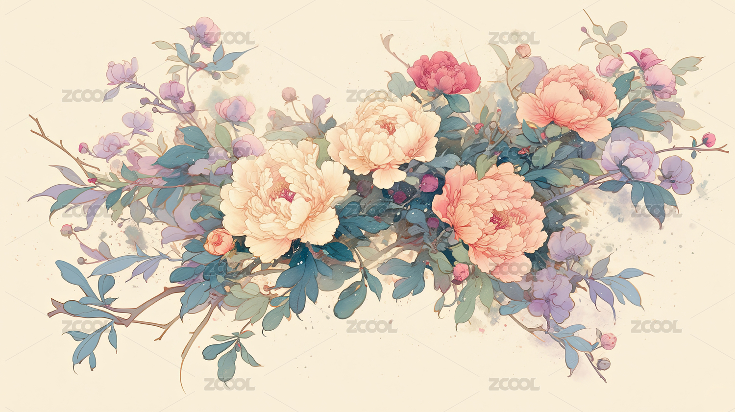 牡丹,古风,水墨,水墨画,古典,纹样,国潮,国风,中国风
