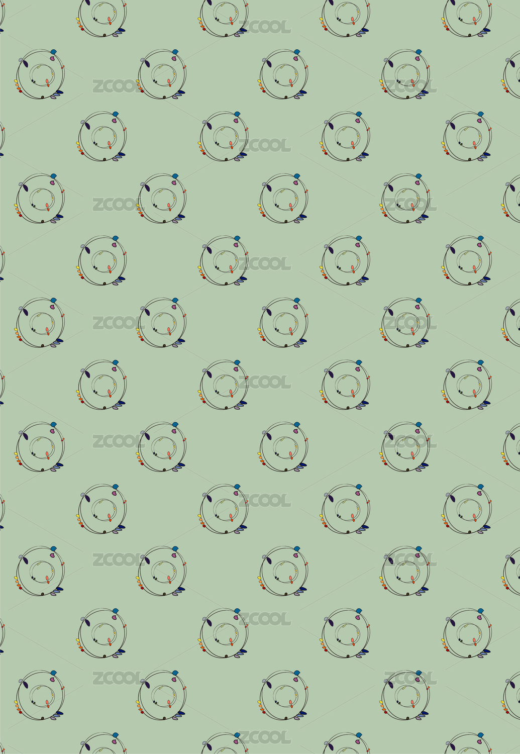 抽象手绘点线面几何满版印花四方连续矢量图