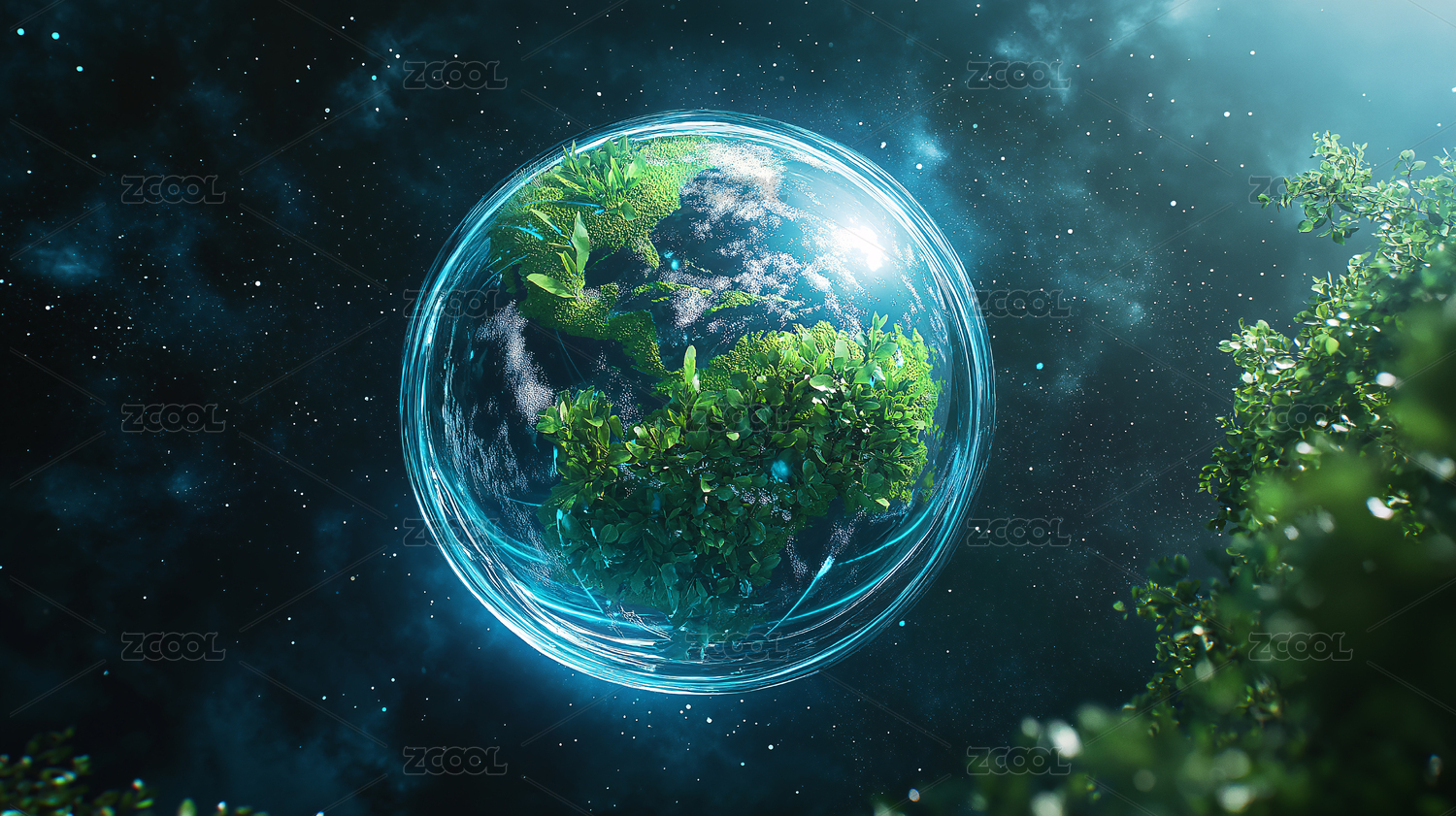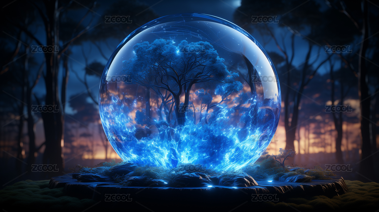 抽象,地球,插画,玻璃,水晶球,全息投影,光,发光,科技