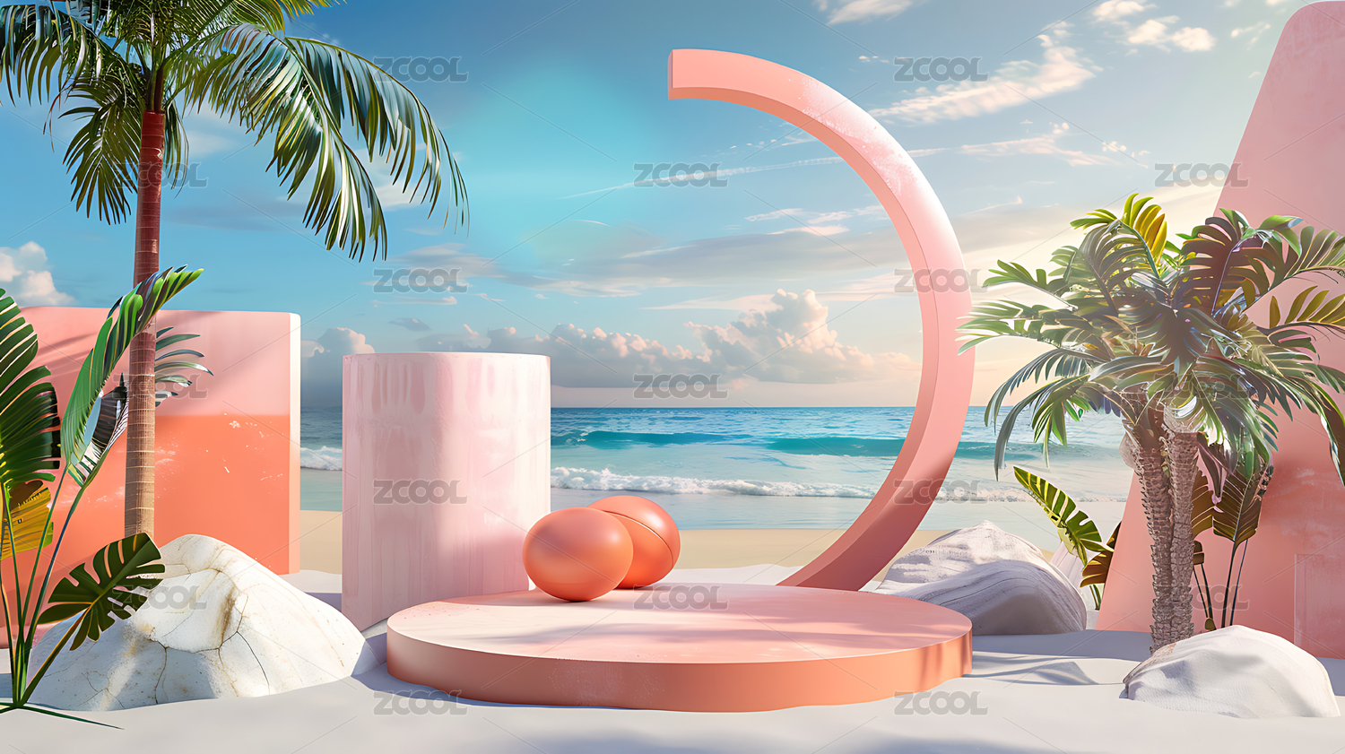 夏日,展台,电商,三维,户外,场景,海洋,海星,贝壳,珊瑚