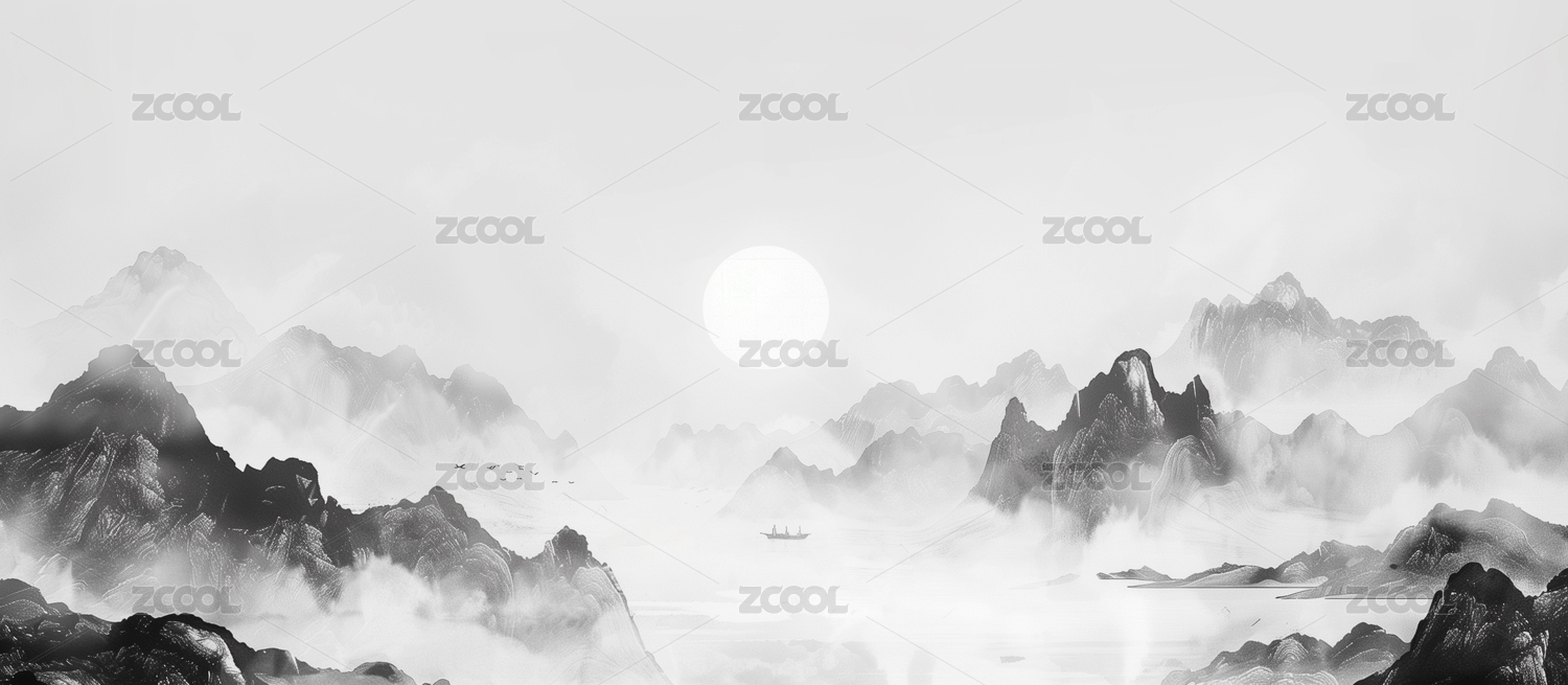 新中式意境山水画背景图
