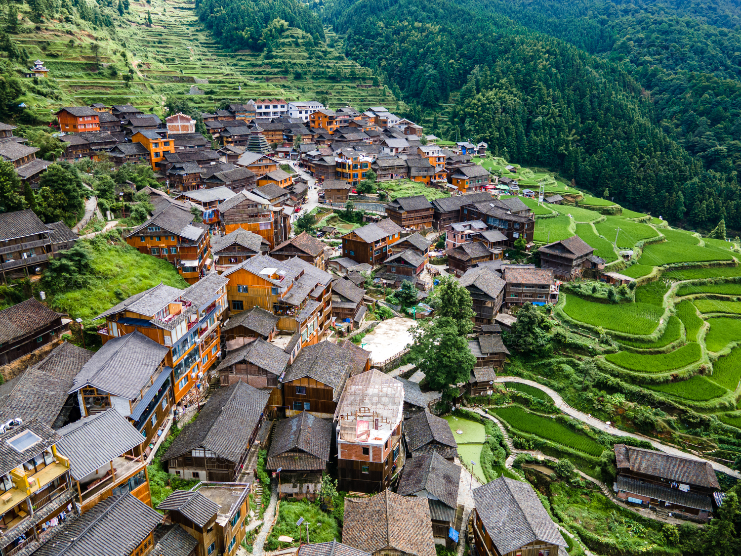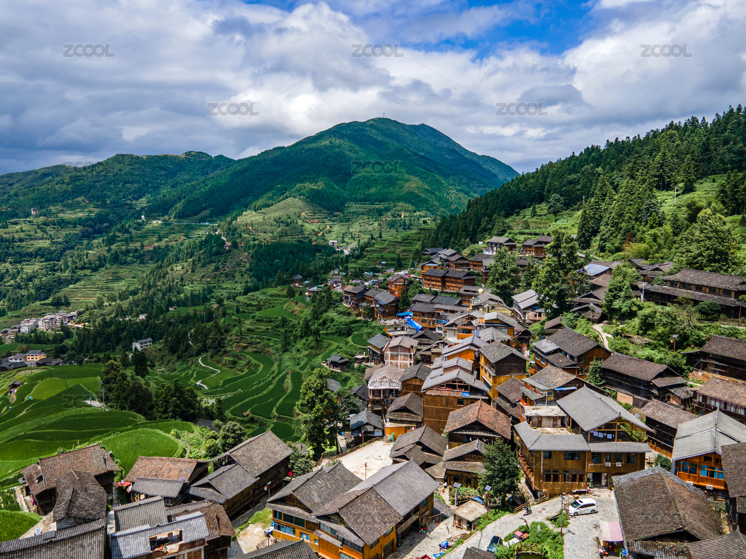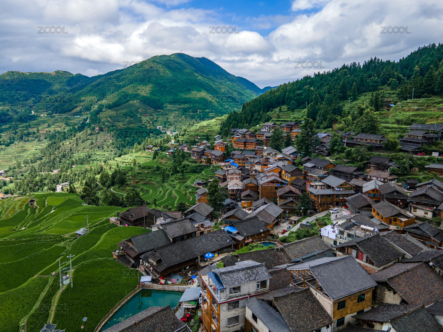 贵州黔东南雷山县白岩村苗寨航拍乡村风光