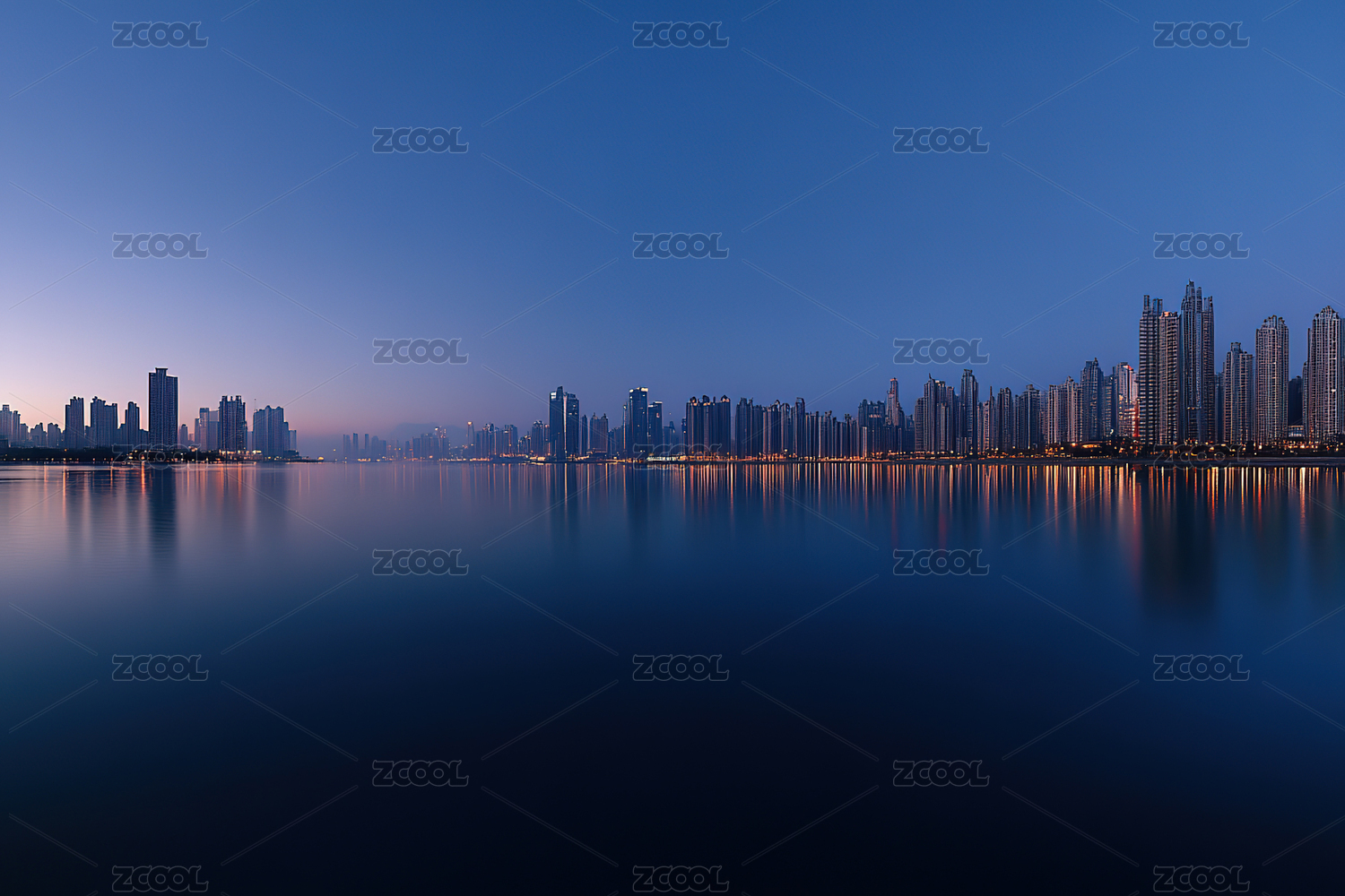 青岛,浮山湾,蓝色,黄昏,日落,夜景,夜晚,摩天大楼,现代,城市