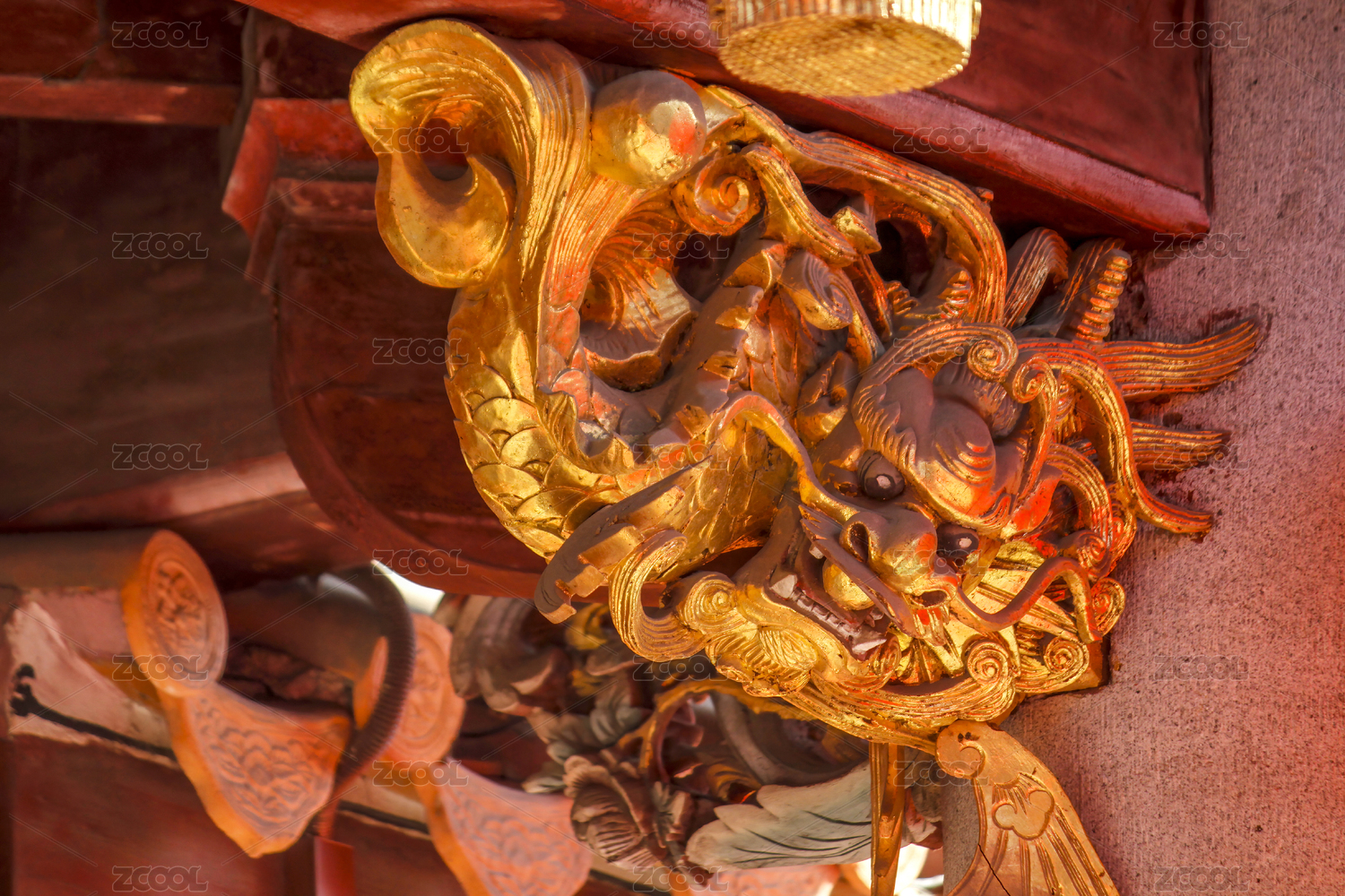 龙王庙的金龙木雕尾部特写